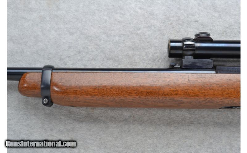 Description: SOLD Caliber Info: .44 Magnum Chambers: Detachable Magazine. Metal Condition: Very good. Barrel has some very light freckling. Wood Condition: Very good. Minor handling marks. Bore Condition: Excellent. Barrels: 18 inches. Stock: Smooth grip hardwood pistol grip. Stock Dimensions: LOP 13 3/8 inches. Fore End: Smooth grip hardwood with a barrel band. Butt Pad: Smooth black metal crescent. Weight: 7 lbs. 0 oz. Sights: Blade front with white. Folding adjustable notch middle. Scope. Item Location: Richfield, WI |