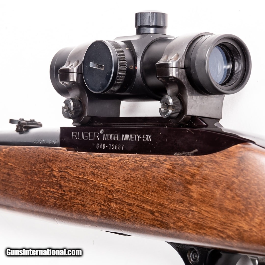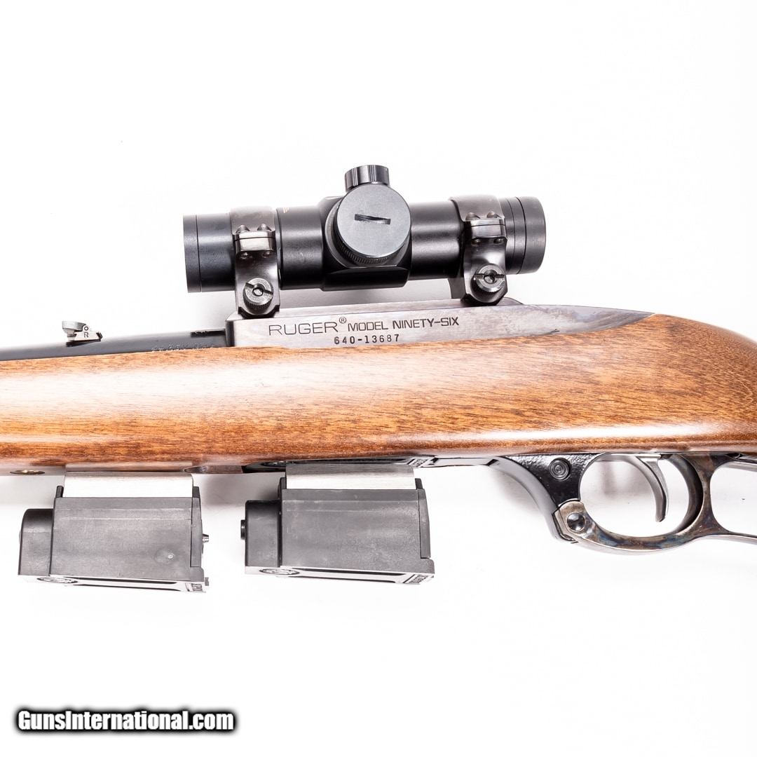 Description: Guns Listing ID: 316099 The Ruger Model 96 is a magazine fed lever gun that was produced from 1996-2009. They were offered in 4 calibers with this being a 44 Magnum version (Model 96/44). The red dot is from BSA but needs batteries, 3-4 round magazines are included. Serial number: 640-13687 SOLD Manufacturer: RUGER Model: MODEL NINETY-SIX Caliber Info: .44 MAGNUM Condition: Used - Certified Barrels: 18.5 BARREL Finish: BLUE |