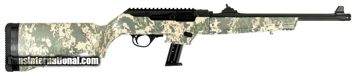 Description: Guns Listing ID: 340553 Rugers PC Carbine rifle features interchangeable magazine wells for use of common Ruger and Glock magazines. Its Dead blow action features a custom tungsten dead blow weight that shortens bolt travel and reduces felt recoil and muzzle rise. The cold hammerforged chromemoly steel barrel is also heavy contoured with fluting. The durable glassfilled nylon synthetic stock features sling swivel studs soft rubber buttpad with spacers and the grip has a proprietary texture for enhanced control. Its CNCmilled aerospacegrade 7075T6 aluminum billet receiver includes an integrated Picatinny rail and adjustable ghost ring rear and blade front sights. The PC Carbine also has a light crisp trigger pull and ambidextrous controls. This model has 1228 threads along with an included thread protector. It ships with SRSeries Pistol and Security9 magazine well installed and includes an additional magazine well accepting Glock magazines. NOTE Older Glock magazines that feature only one magazine latch slot may still be used with the PC Carbine but the magazine release button must remain on the left side of the rifle as shipped from the factory as the magazine will not properly lock into the magazine well.\ SOLD Manufacturer: RUGER Model: PC CARBINE Caliber Info: 9MM LUGER (9X19 PARA) Condition: new Barrels: 16.1 BARREL Finish: CAMO |