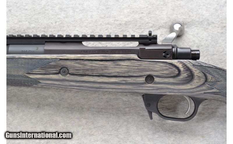 Description: This Ruger Model Gunsite Scout is a right hand bolt action rifle in .308 Win. Cal. It has a 16.1 inch matte black cold hammer forged barrel with a flash suppressor, protected blade front sight and ghost ring rear sight. The stock is a checkered grey laminate pistol grip. The bolt is a non-rotating Mauser type controlled round feed extractor. This rifle is in excellent condition and appears to have not been shot much. SOLD Caliber Info: .308 Win. Chambers: Bolt Action 10 shot detachable box magazine. Metal Condition: Excellent. Wood Condition: Excellent. Bore Condition: Excellent. Barrels: 16.1 inch matte black cold hammer forged with flash suppressor. Stock: Checkered grey laminate pistol grip. Stock Dimensions: LOP 13 1/4 inches. Fore End: Checkered grey laminate. Butt Pad: Ribbed soft black rubber. Weight: 7 lbs. 2 oz. Sights: Blade front with protective sides. Ghost ring rear. 11 inch Picatinny rail on top. Extras: Sling swivel studs. Item Location: Richfield, WI |