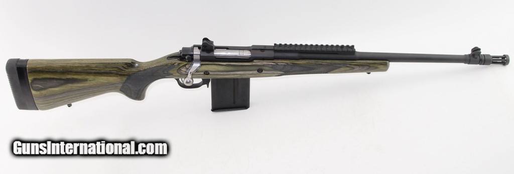 Description: Ruger Gunsite Scout .308, 18" bbl, bright shiny bore, good rifling, rear peep sight, front blade in wings, flash hider, matte black finish, Picatinny rail on top of barrel, checkered green/grey laminated grip stock, light handling marks, 13 3/8" LOP, sling studs, one magazine, and black recoil pad. This is a very clean rifle! Add 3% for Credit Card Shipping $35.00 SOLD |