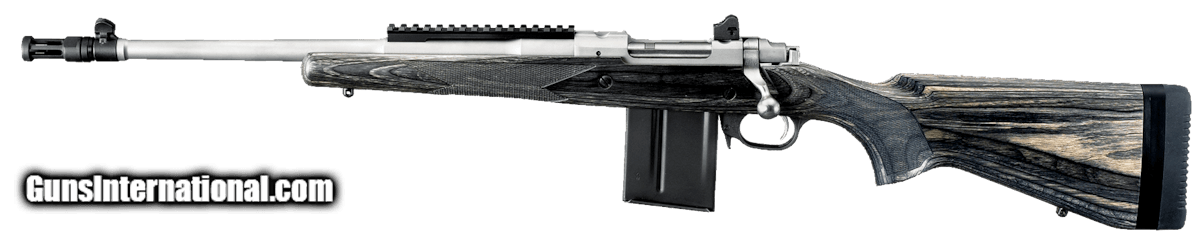Description: Guns Listing ID: 60926 Ruger‚‚s Gunsite Scout Rifle is developed with Gunsite, and is \"Gunsite Approved\" and features the Gunsite name rollmarked on the receiver. It has a forward-mounted Picatinny rail which allows for the mounting of modern optics and a built-in, accurate sighting system with ghost ring adjustable rear aperture sight and a non-glare, blade front sight. Patented integral scope mounts, are machined directly on the solid-steel receiver which provides a stable mounting surface. The non-rotating, Mauser-type controlled round feed extractor features a fixed blade-type ejector that positively ejects the empty cases as the bolt is moved fully rearward. The Gunsite Scout Rifle also has a free-floated, cold hammer-forged barrel with ultra-precise rifling, three-position safety, sling swivel studs, detachable box magazine with push-forward magazine release, and a soft rubber buttpad with buttpad spacers. Included are scope rings and three .5\" spacers. This left handed model has a 18\" stainless steel barrel, black laminate stock, and Gunsite engraved on the grip cap SOLD Manufacturer: RUGER Model: GUNSITE SCOUT RIFLE Caliber Info: .308 WIN Condition: new Barrels: 18" barrel Finish: BLACK AND STAINLESS |