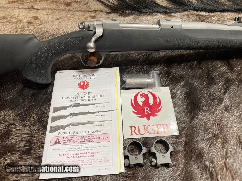 Description: NEW RUGER M77 HAWKEYE ALASKAN STAINLESS 375 RUGER RIFLE - LAYAWAY AVAILABLE. FREE AFRICAN SAFARI WITH KUCHE SAFARIS (: KUCHE.CO.ZA) INCLUDED WITH THIS RIFLE! SAFARI IS FOR 1-HUNTER / 5-DAYS / 3-ANIMALS (IMPALA, BLESBUCK, WARTHOG). SAFARI IS CUSTOMIZABLE WITH ADDITIONAL DAYS AND ANIMALS AVAILABLE. THE CERTIFICATE IS GOOD FOR 3-YEARS FROM DATE OF PURCHASE AND WILL BE EMAILED TO YOU. NOTE: THE SAFARI IS FREE AND DOES NOT ADD ANY COST TO THE RIFLE. PURCHASE A SCOPE FROM JD OUTFITTERS AND RECEIVE FREE MOUNTING BEFORE THE RIFLE SHIPS. Features Of This Great Bolt Action Rifle Include: