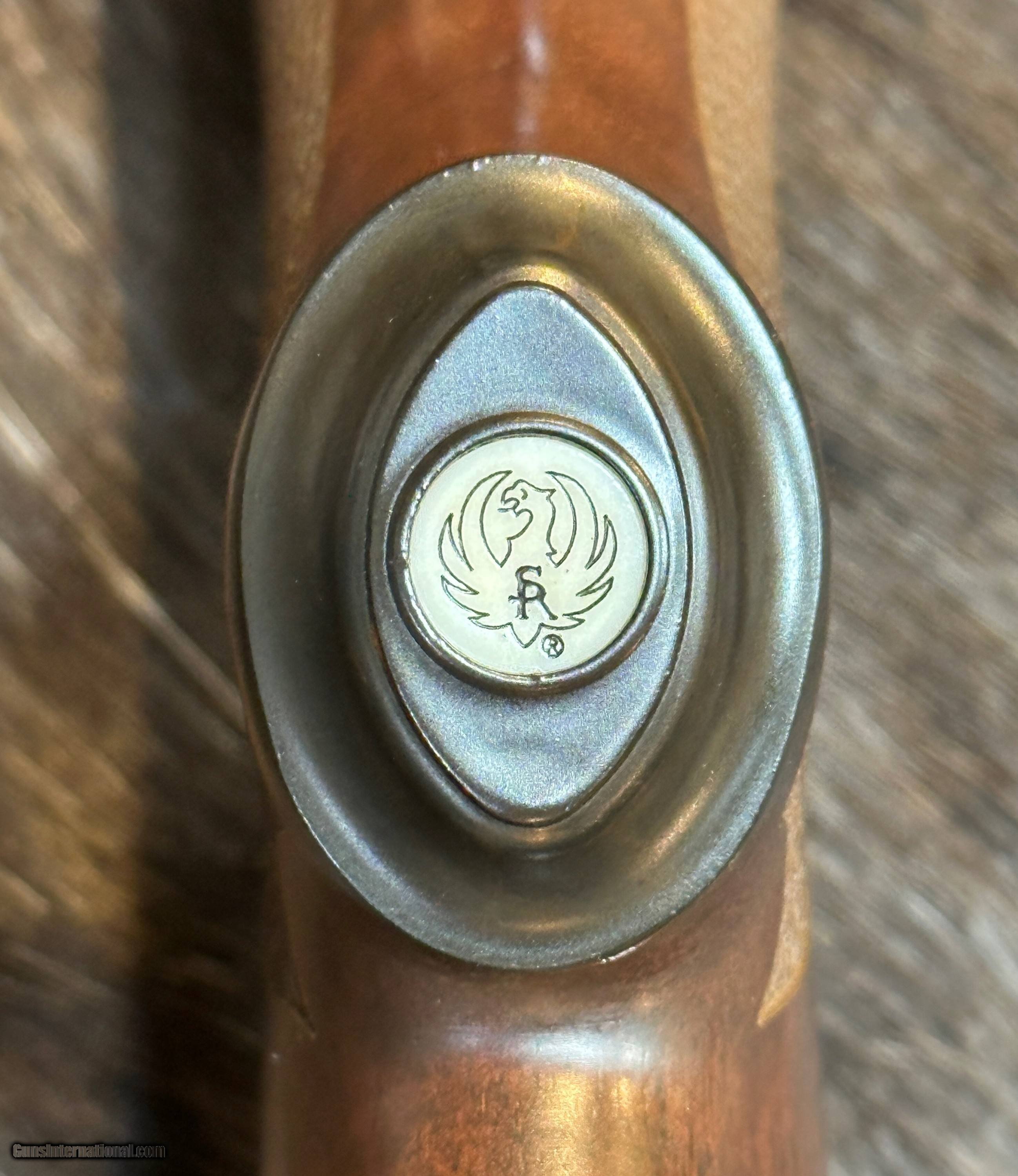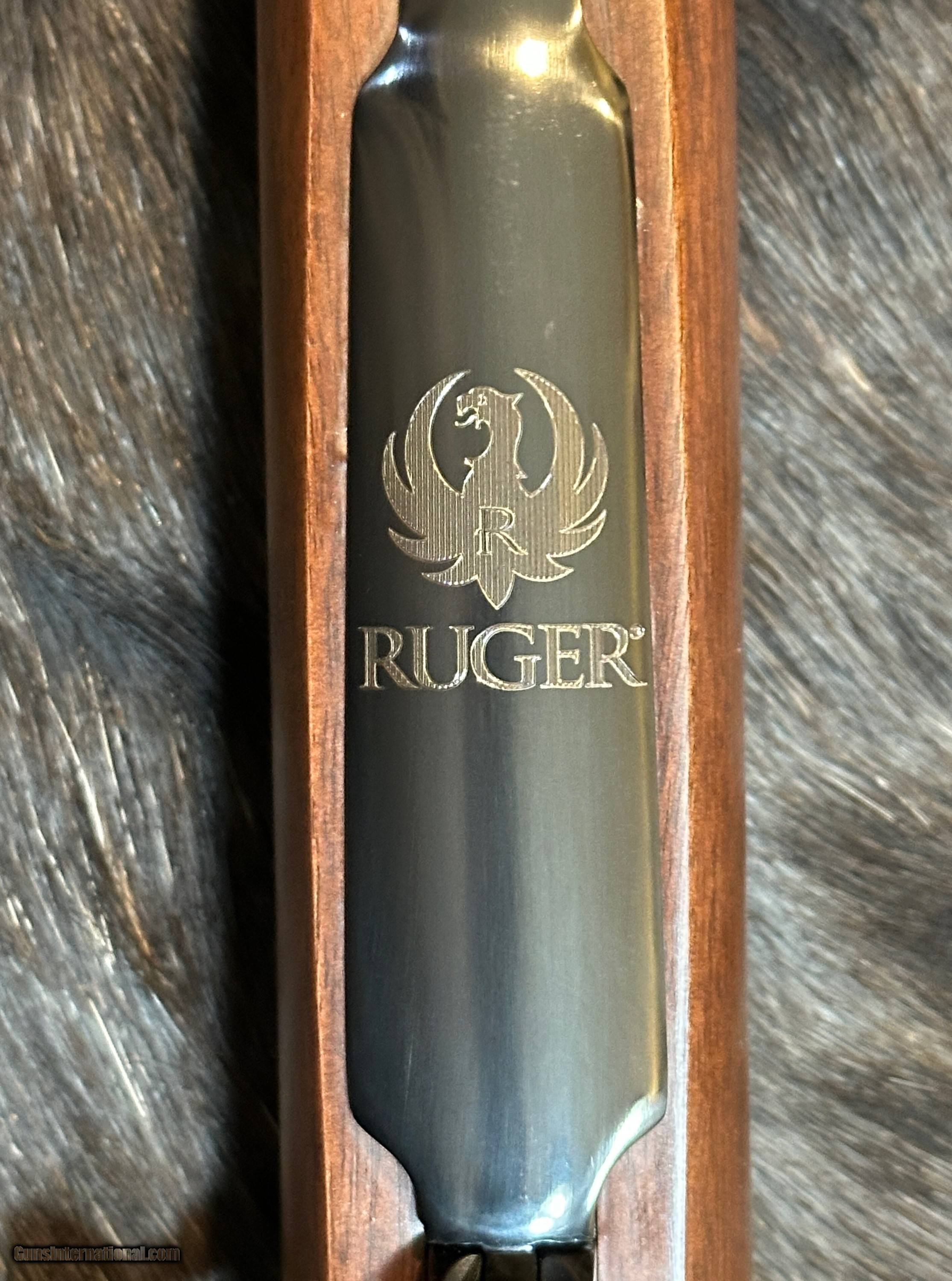 - Hinged solid-steel floorplate for easy unloading without having to chamber each cartridge. Features an engraved Ruger logo and patented latch that is flush with the trigger guard to avoid accidental dumping of cartridges.