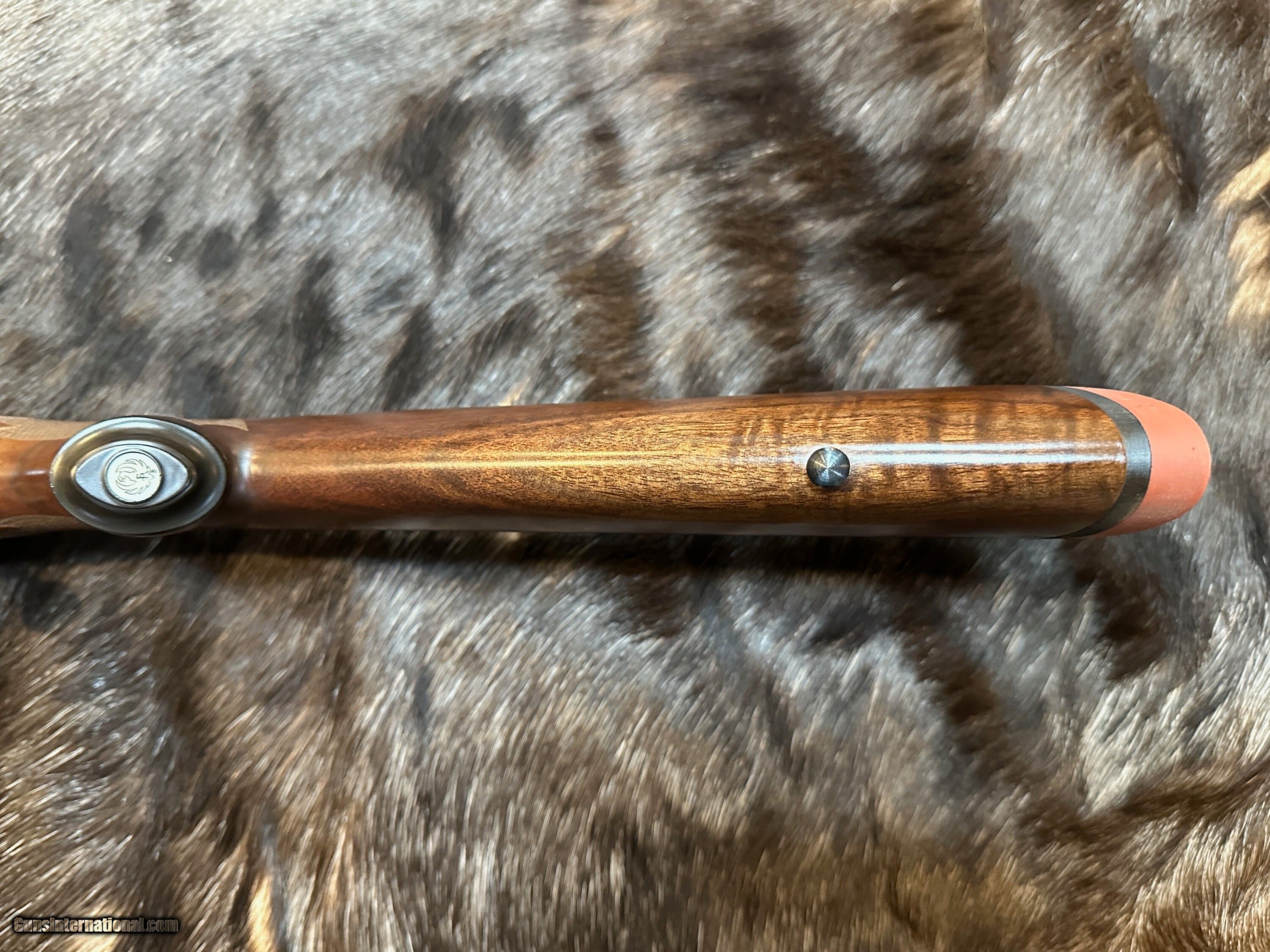 - Ergonomically pleasing, American walnut stock with Ebony forend cap has rounded contours along the barrel, on the bottom of the stock and on top of the pistol grip and wrap-around checkering on grip and forend. LOP is 13.5".