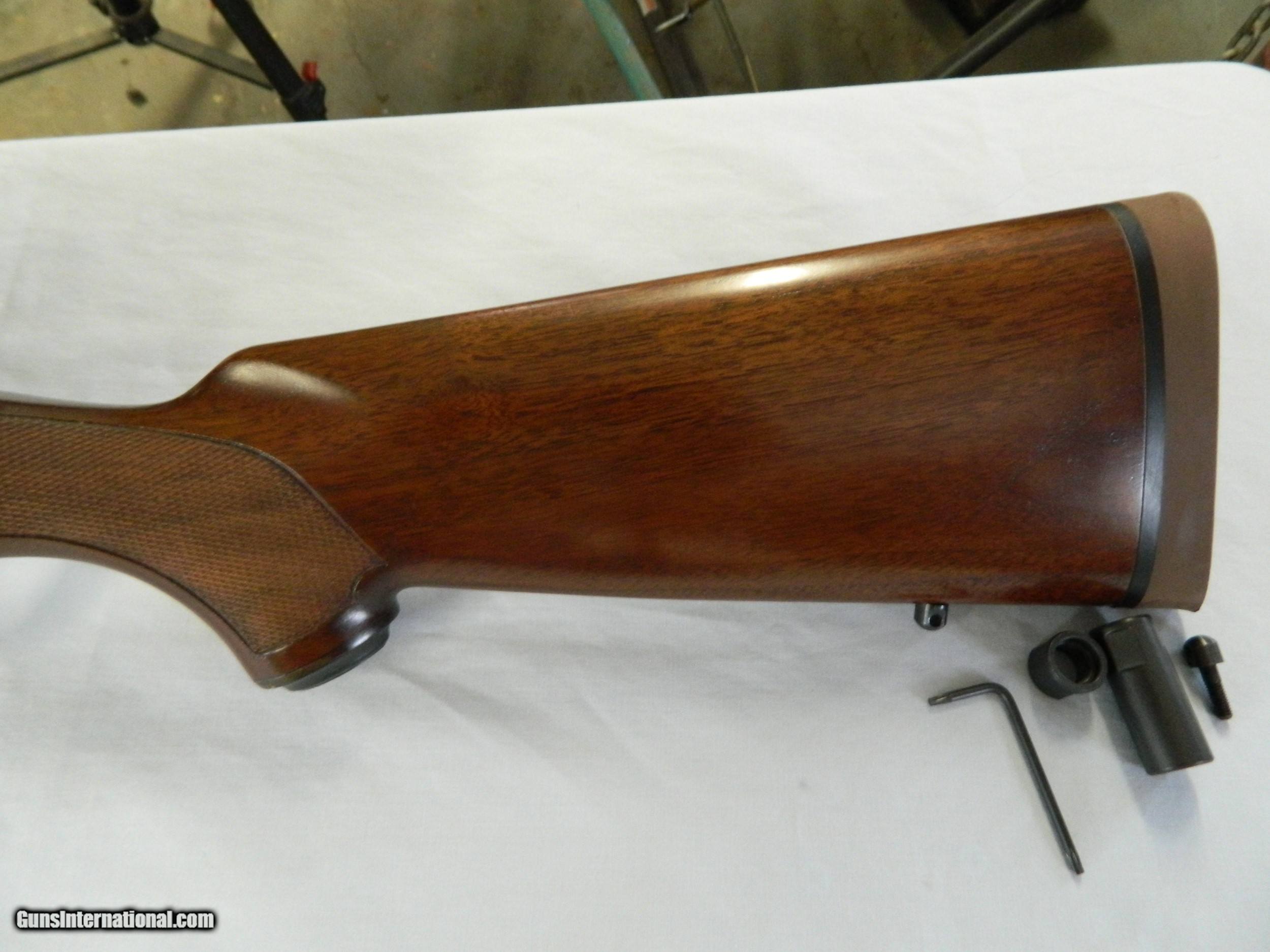 Description: A Ruger model 77 MK-2 AFRICAN in .338 Win caliber in as new plus condition, has been tricked out professionally with a beautiful satin finish to the wood and a new Pachmyer recoil pad added, a 2.5 lb. trigger job and polished, slicked up action; stock professionally glass bedded, shot only enough to testfire for feed and function. ...This is an outstanding rifle in .338 Win caliber with rings and detachable removeable muzzle brake and thread protector etc. at least $500 worth of custom work on this fine rifle, Scope not included, but scope rings are........ $800.00 plus shipping and insurance of $45. I throughly tested this rifle for feed and function and its really one nice rifle and ready to hunt..It was used as a closet queen only..Trades and offers considered.f Selling out due to age. SOLD |