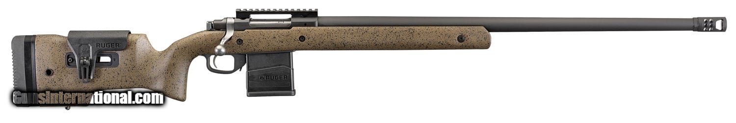 Description: Guns Listing ID: 153225 Rugers Hawkeye Rifle has a nonrotating Mausertype controlled round feed extractor which features a fixed bladetype ejector that positively ejects the empty cases as the bolt is moved fully rearward. The cold hammerforged barrel results in ultraprecise rifling which provides exceptional accuracy longevity and easy cleaning. It also has a threeposition safety. The Long Range Target model features a 4140 chromemoly steel barrel with 5R Rifling heavycontour and a Ruger Precision Rifle Hybrid Muzzle Brake. The twotone Target stock features twoway adjustable comb adjustable pull length with soft rubber buttpad and QD attach points. Its 20 MOA Picatinny rail is secured with four 840 screws for increased longrange elevation capabilities while integral scope mounts are machined directly on the solidsteel receiver. The Hawkeye Long Range Target also has a twostage target trigger rugged onepiece stainless steel bolt and ships with one AIStyle fiveround magazine. SOLD Manufacturer: RUGER Model: HAWKEYE Caliber Info: .204 RUGER Condition: new Barrels: 2.6 BARREL Action: BOLT ACTION Finish: BROWN Weight: 11 LBS. |