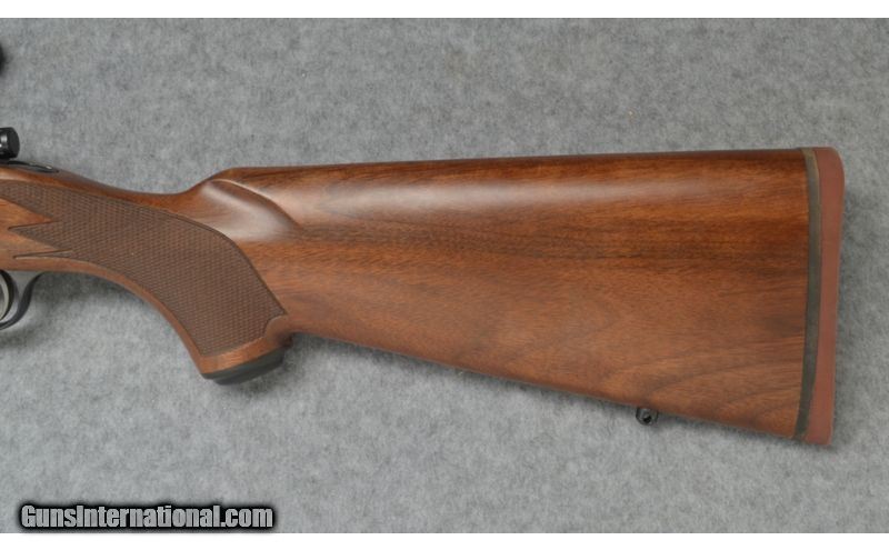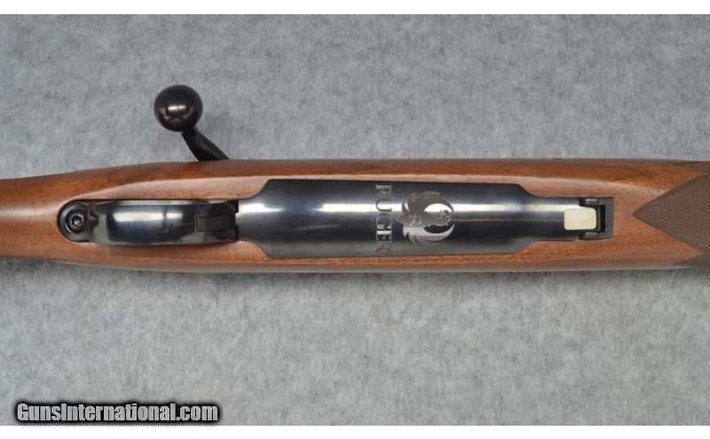 Description: This Ruger Hawkeye African is in excellent condition with a 24 inch blue round barrel that has a very clean bright bore. The walnut stock is in excellent condition with no visible field marks. The metal is also in excellent condition with no visible field marks. This Ruger is new in the box and has not been fired. It come with the original box and scope rings. Over all this is a very nice rifle that would be excellent for hunt big game or for taking to the range. SOLD Caliber Info: 6.5x55. Chambers: Bolt action repeater. Metal Condition: Excellent. Wood Condition: Excellent. Bore Condition: Clean and bright. Barrels: 24 inch blue round barrel. Triggers: Single blue trigger. Stock: Walnut stock with black rubber Ruger grip plate, sling studs and checkering on the pistol grip. Stock Dimensions: 13 1/4 inch LOP. Fore End: Matching walnut fore end with slings and checkering. Butt Pad: Browning rubber butt pad. Weight: 7 lbs. 8 Oz's. Sights: Iron sights with scope rings. Extras: Come with it original box and scope rings. Item Location: Sun Prairie, WI |