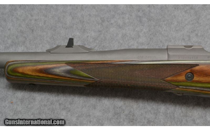 Description: Great rifle. Constructed to Ruger's legendary standards of performance. Ideal for pursuing big game on any continent. Excellent choice for a Fine Rifle, Bolt Gun, or Ruger collection. SOLD Caliber Info: .375 Ruger. Chambers: Bolt action magazine fed repeater. Metal Condition: Minor handling marks. Wood Condition: Minor handling marks. Bore Condition: Strong lands and grooves. Barrels: 20" Matte, with muzzle break. Triggers: Single. Stock: Green Mountain select laminate stock with pistol grip and sharp checkering. Stock Dimensions: LOP 13 1/2, DAC 1 1/2 In, DAH 1 7/8 in. Fore End: Green Mountain select laminate with sharp wrap around checkering. Butt Pad: Soft black rubber. Weight: 8 Lb. Sights: Express style bead front and adj. rear sights. Item Location: Anchorage, AK |