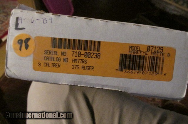 Ruger Hawkeye Rifle Model 07129. 375 Ruger Caliber, New old Stock