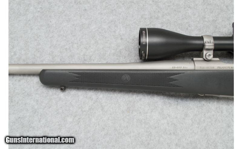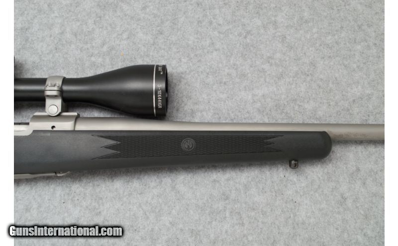 Description: Used. SOLD Caliber Info: .22-250 Rem. Metal Condition: Very Good: a few scratches on barrel: Brushed Stainless Bore Condition: Clean and sharp Barrels: 22 1/4 Triggers: Smooth stainless Stock: Black checkered synthetic pistol grip Stock Dimensions: LOP - 13 5/8 Butt Pad: Black rubber pad Weight: 8 lbs. 8 oz. (with scope) Sights: No sights; Mueller Scope Extras: Mueller 3-10X44 IGR Sport Dot Scope: Windage Cap deformed. Item Location: Sun Prairie, WI |