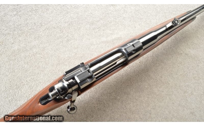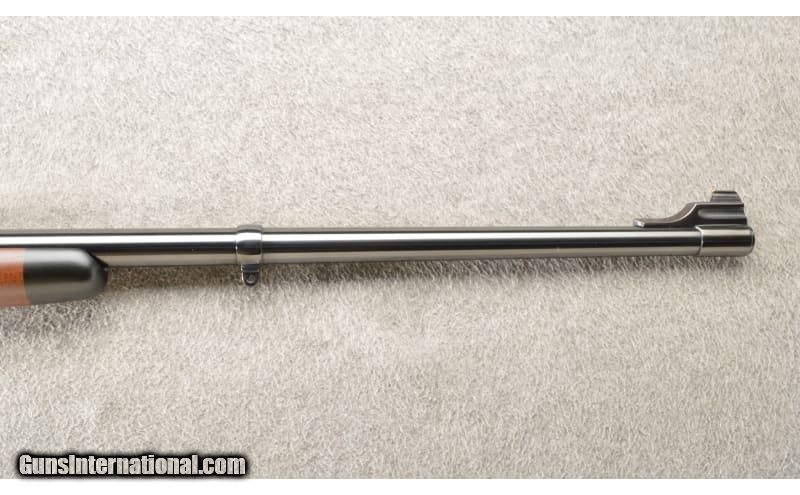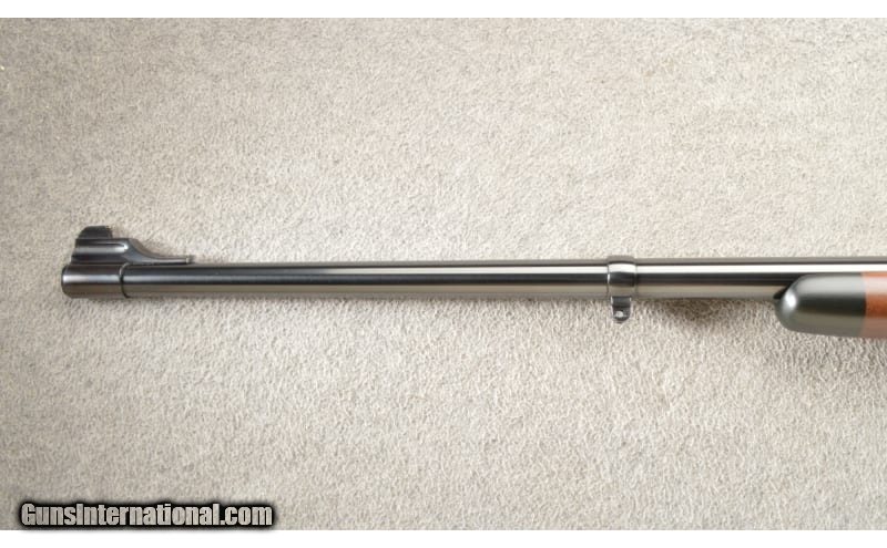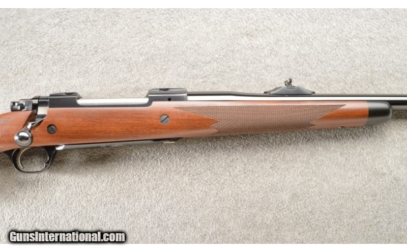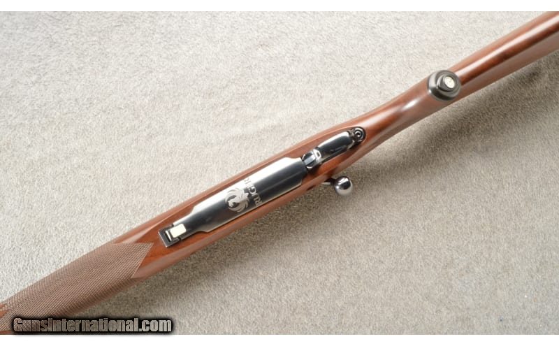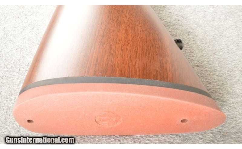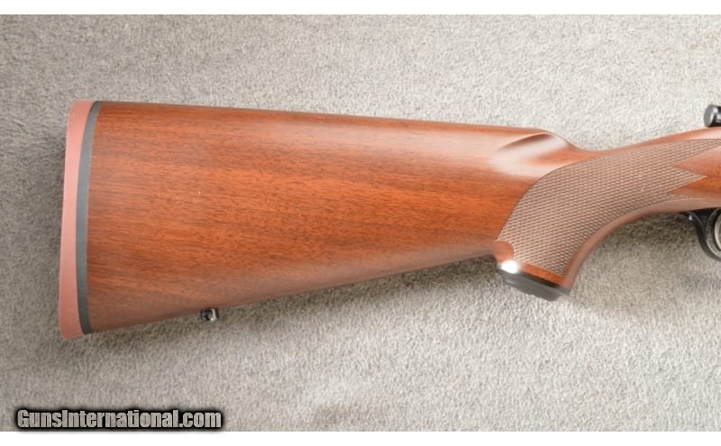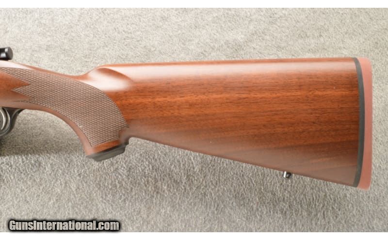 Description: Lipsey's Exclusive Ruger M77 Hawkeye African chambered in 35 Whelen. This Ruger has a 24" barrel with a gold bead front blade sight and a white diamond adjustable folding rear leaf. The stock is a one piece checkered walnut with a metal capped pistol grip and an ebony tipped forend. There are sling studs on the belly of the stock and also on a barrel band. The steel floorplate is hinged and engraved with the Ruger Phoenix logo and name. The bolt is a non-rotating, Mauser-type controlled round feed extractor with a fixed blade-type ejector. This gun comes new in the factory box with the owners manual, paperwork, cable lock and Ruger factory rings. .35 Whelen SOLD Chambers: Bolt action. Metal Condition: New. Wood Condition: New. Bore Condition: New. Barrels: 24" barrel. Triggers: Single. Stock Dimensions: LOP 13.5". Fore End: Checkered. Butt Pad: Rubber. Weight: 7.75 lbs Sights: Adjustable. Item Location: Owatonna, MN |