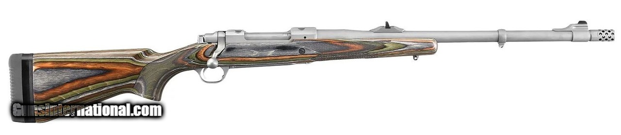 Description: Manufacturer: Sturm Ruger & Co. Model: M77 Hawkeye Guide Gun SKU: 47118 Caliber: .30-06 Springfield Capacity: 4 Rounds Barrel Length: 20" Threaded 1/2"-24 Muzzle Device: Radial-Port Muzzle Brake Material: Stainless Steel Finish: Hawkeye Matte Stainless Stock: Green Mountain Laminate Sights: Bead Front, Adjustable Rear Overall Length: 41" - 42.5" Twist: 1:10" RH Length of Pull: 12.75" - 14.25" Weight: 8.1 lbs All items are factory new in box unless otherwise stated. Based on the information available to us, the above specifications describe this item to the best of our knowledge. For further information, please contact or visit the manufacturer's . SOLD |