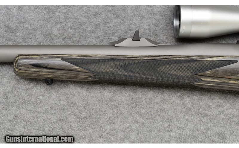 Description: This left-handed Ruger M77 Hawkeye in .375 Ruger is excellent throughout. The stainless steel and black laminate wood stock are a nice look. Condition shows little use. .375 Ruger SOLD Metal Condition: Excellent Wood Condition: Excellent Bore Condition: Excellent Barrels: 20" Stainless Triggers: Factory Stock Dimensions: 13.5" LOP Fore End: Checkered Black Laminate Stock with Black Pistol Grip Cap with Ruger Medallion - Black Checkered Laminate Fore End Weight: 9 lbs. Sights: V Notch Rear - Post & Bead Front - Weaver 2-10x38mm Item Location: Wheeling |