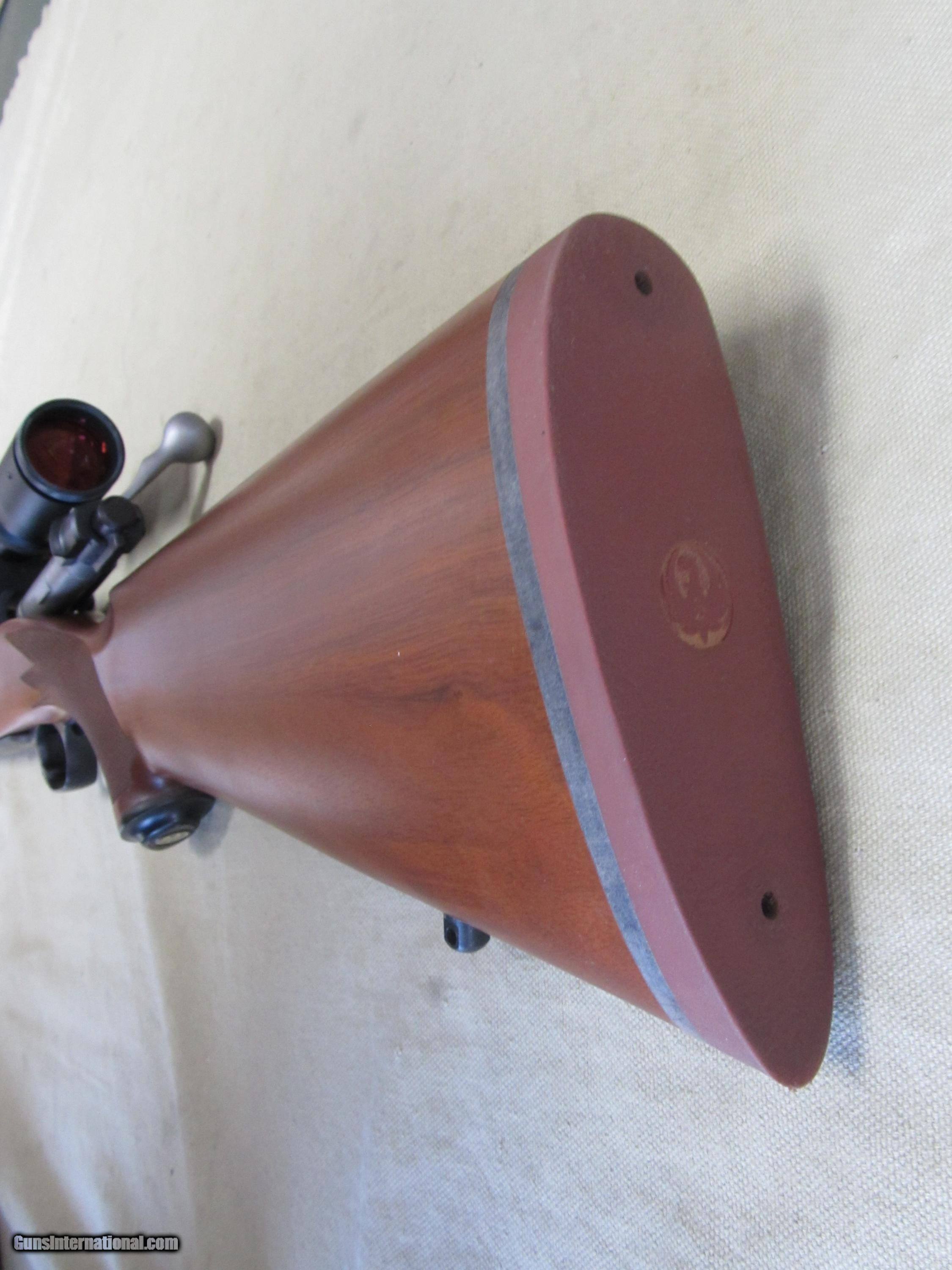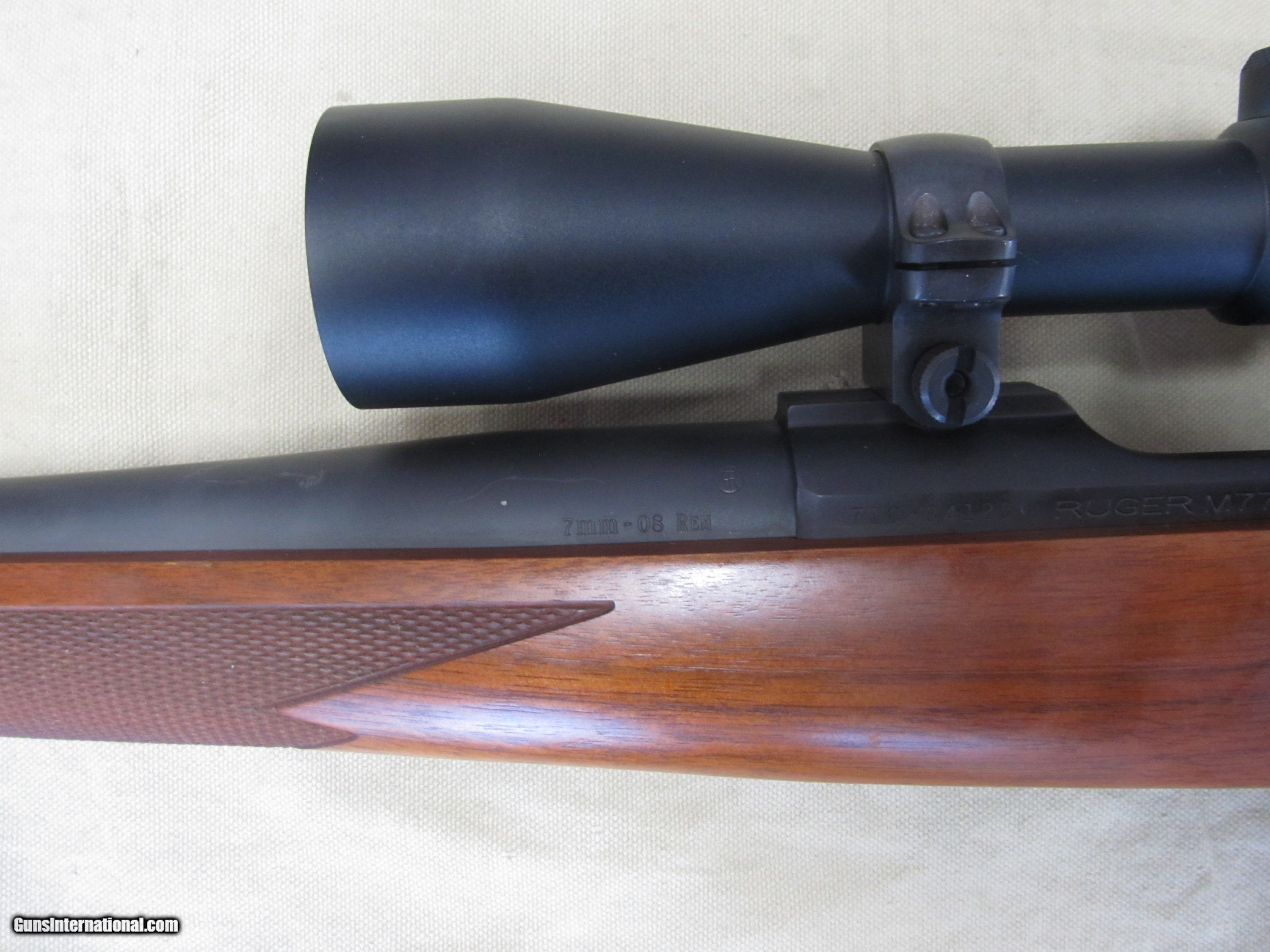 VERY NICE RUGER M77 HAWKEYE 7MM08 WOOD STOCKED BOLT ACTION RIFLE WITH SCOPE
