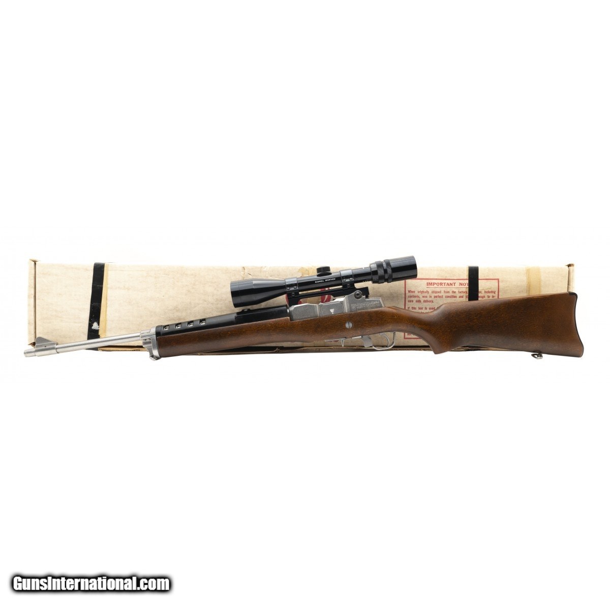 Stainless steel carbine with wood stock. Has a Bushnell 3x9 scope. Excellent condition with box.