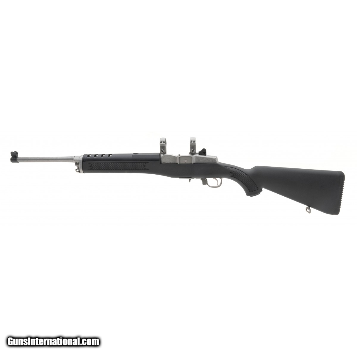 Description: " SN: 584-28715. Semi-auto ranch rifle with a 18.5"" barrel, an adjustable rear sight and, a synthetic stock. Overall in excellent condition. Comes with scope rings mounted. SOLD |