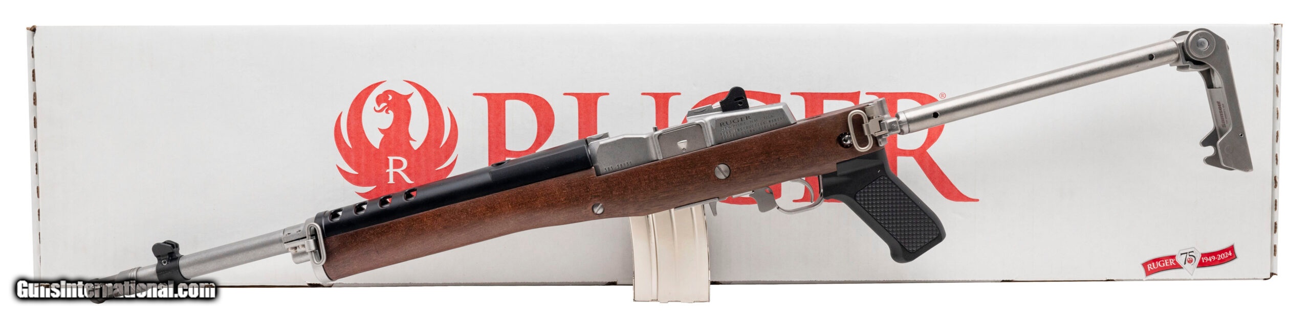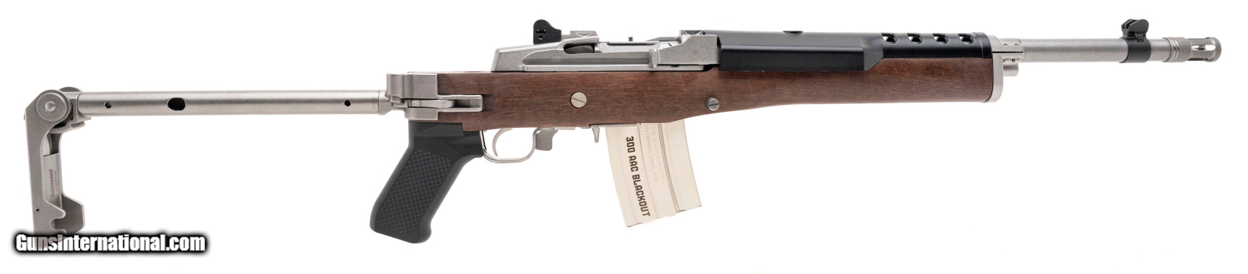 Description: "Ruger Mini-14 Rifle 300 BLK with a 16.12"" barrel with flash hider. Matte Steel finish and Walnut forend with Stainless Side-Folder. 20rd capacity. NEW. UPC: 736676058969 (STOCK PHOTO) SOLD |