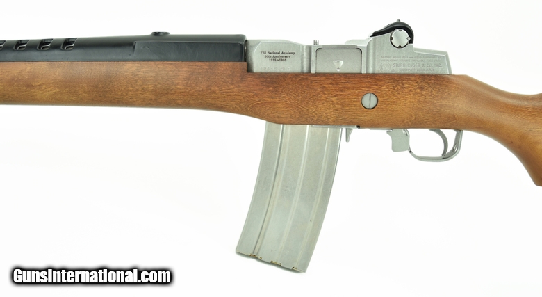 Ruger Mini 14 .223 Rem caliber rifle. Rare FBI Academy 50th Anniversary Special Edition made in 1985. This is an original “GB” model with special markings on the gun and a special medallion in the buttstock. These were made available to graduates of the FBI Academy. A neat gun in excellent condition.