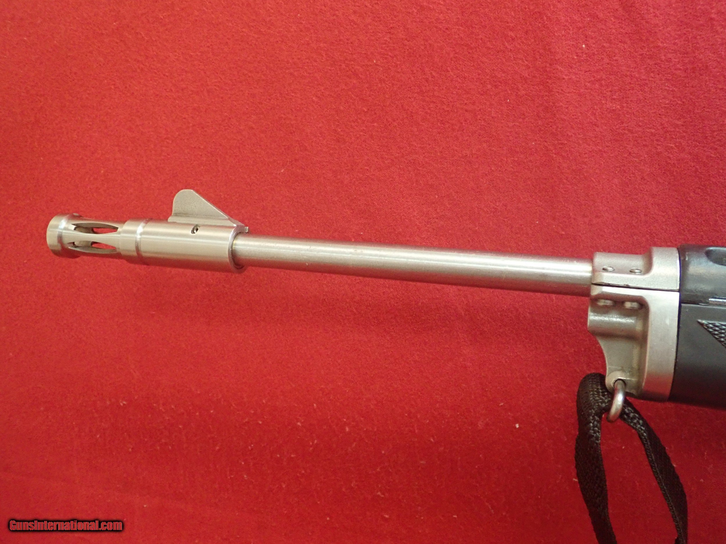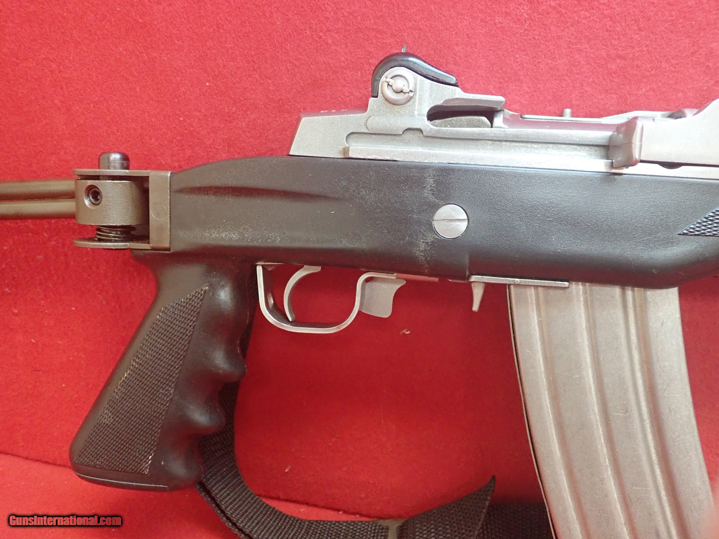 Description: **SOLD** Ruger Mini-14 .233 Remington semi automatic rifle, dated to 1982. This rifle features the classic Mini-14 operating system, with a stainless steel construction, black synthetic furniture, and a folding wire stock. The rifle has been fitted with a matching muzzle break as well. The rifle is in great condition and appears to have seen light to moderate use, wiith only minro wear and small blemishes. The rifle includes a black nylon sling, and an unmarked 40rd magazine. This is a very cool rifle, and likely a very fun shooter! The folding stock makes it a great candidate for a truck gun as well. Please refer to the photos to further assess the condition of the rifle. SOLD Manufacturer: Ruger Model: Mini-14 Serial Number: 183-19606 Caliber Info: .223 |