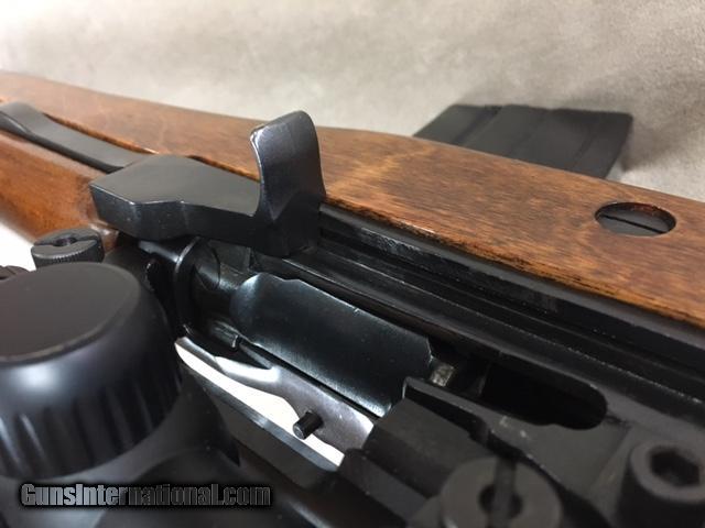 Description: This is a nice early Ruger Mini-14 Rifle in cal .223 in excellent overall condition to which has been mounted a New Nikon Buckmaster 3-9x riflescope on S&K Wayne Mount and Rings. Rifle is the early 181- version which has the wooden handguard. Entire gun about perfect in all respects with only the most minor of handling marks to the wood - a wonderful outfit, shipped with a 20 Round factory magazine. If you are not allowed a 20 round magazine tell us and we shall ship it with a 5 round factory mag SOLD |