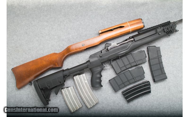 Description: Used. SOLD Caliber Info: .223 Rem. Metal Condition: Very good; overall Wood Condition: Good, overall; some scratches and dings in finish Bore Condition: Clean and sharp Barrels: 18 1/2 Triggers: Smooth blued steel Stock: Folding synthetic with pistol grip (ATI) Stock Dimensions: Adjustable Fore End: Synthetic; vented Butt Pad: Black rubber pad Weight: 7 lbs. 14 oz. Sights: Adjustable rear; blade front Extras: Includes original wood stock; (6) magazines. Item Location: Sun Prairie, WI |