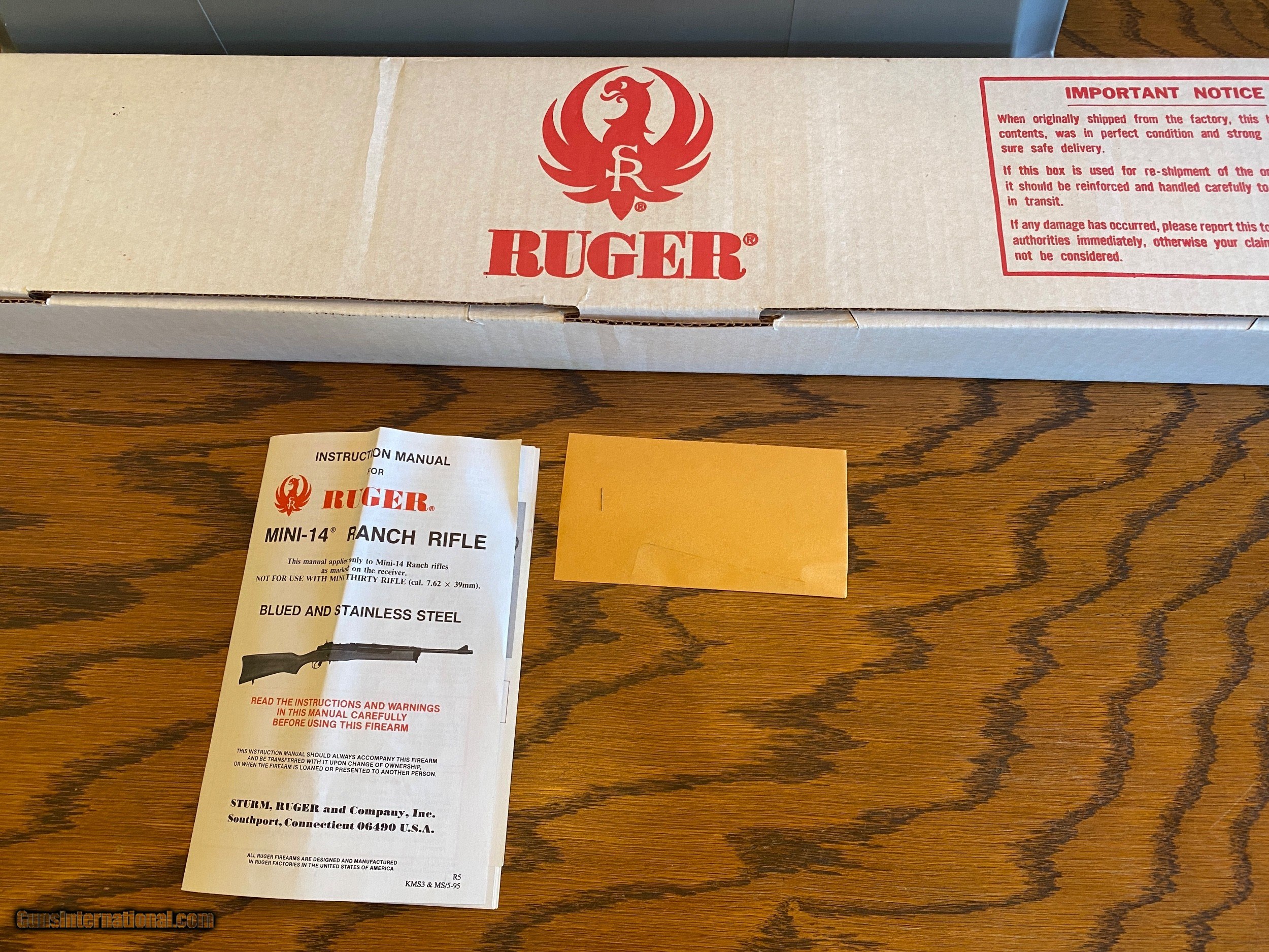 Description: !!!!!SOLD!!!!! This is a Ruger Mini-14 in .223 Remington. The gun is in excellent, all original condition and is unfired. Manufactured in 1996. Original box, manual and envelope with hex-head wrench for adjusting the rear sight. Wood is excellent, metal is excellent. Includes one, 5-round magazine. SOLD Rifle Caliber: .223 Remington Manufacturer: Ruger Model: Mini-14 Condition: Excellent - unused Metal Condition: Excellent Wood Condition: Excellent Bore Condition: Excellent Butt Pad: Excellent Manufacture Date: 1996 Case: Original box and manual |