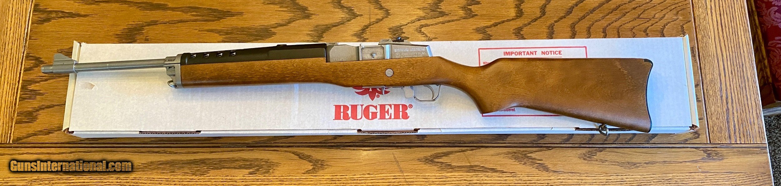 RUGER MINI-14, 223 REM. STAINLESS STEEL AND WOOD - UNFIRED - INCLUDES ORIGINAL BOX AND MANUAL