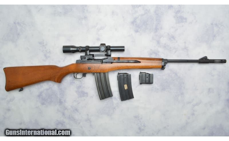 Description: Ruger Mini 14 Ranch Style .223 Semi Automatic Rifle with wooden stock & hand guard, 18.5" barrel with flash hider, metal butt plate, Weaver K3-W Scope on a Wichita Scope Base. Comes with three (3) magazines. Rifle is in very good condition. .223 Remington SOLD Chambers: .223 Remington Metal Condition: Very Good Wood Condition: Very Good Bore Condition: Very Good Barrels: 18.5" with flash hider Sights: Weaver K3-W Scope on a Wichita Scope Base Item Location: Green Bay |