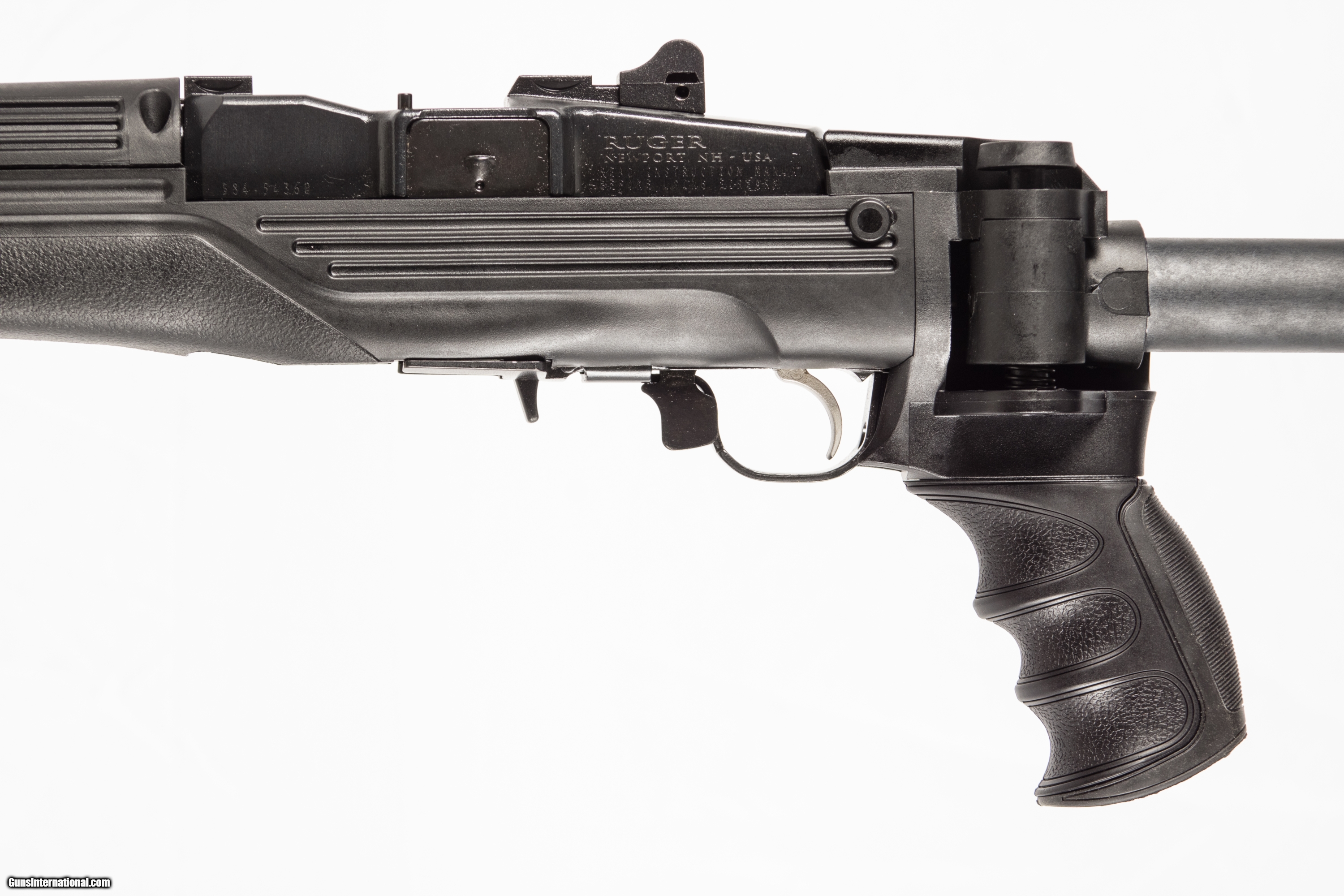 Ruger Mini-14 chambered in 5.56 mm with a 16 inch barrel bright & shiny bore and folding adjustable stock. This gun is in excellent condition and is covered by Dury's Lifetime Warranty.