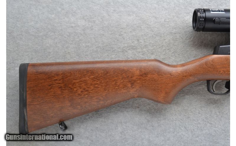 Description: This Ruger Model Mini-14 is a semi-auto rifle in 5.56 NATO Cal. It has an 18 inch barrel with an Accu-Strut LT attached. The stock is a smooth grip hardwood pistol grip with the forend having a vented black polymer top. It is outfitted with a Bushnell AR-223 1-4x24 Scope and has iron sights. In overall excellent condition it comes as is with two 20 round magazines. SOLD Caliber Info: 5.56 NATO. Chambers: 20 shot detachable magazine. Metal Condition: Excellent. Wood Condition: Excellent. Bore Condition: Excellent. Barrels: 18 inches. Accu-Strut LT installed. Stock: Smooth grip hardwood pistol grip. Stock Dimensions: LOP 13 1/2 inches. Fore End: Smooth grip hardwood with a steel end. Vented black polymer top. Butt Pad: Ruger black rubber pad. Weight: 9 lbs. 4 oz. with Scope mounted. Sights: Bushnell AR/223 1-4x24 Scope. Blade front with protective sides. Adjustable peep rear. Extras: With Sling Swivels. Item Location: Kansas City, KS |