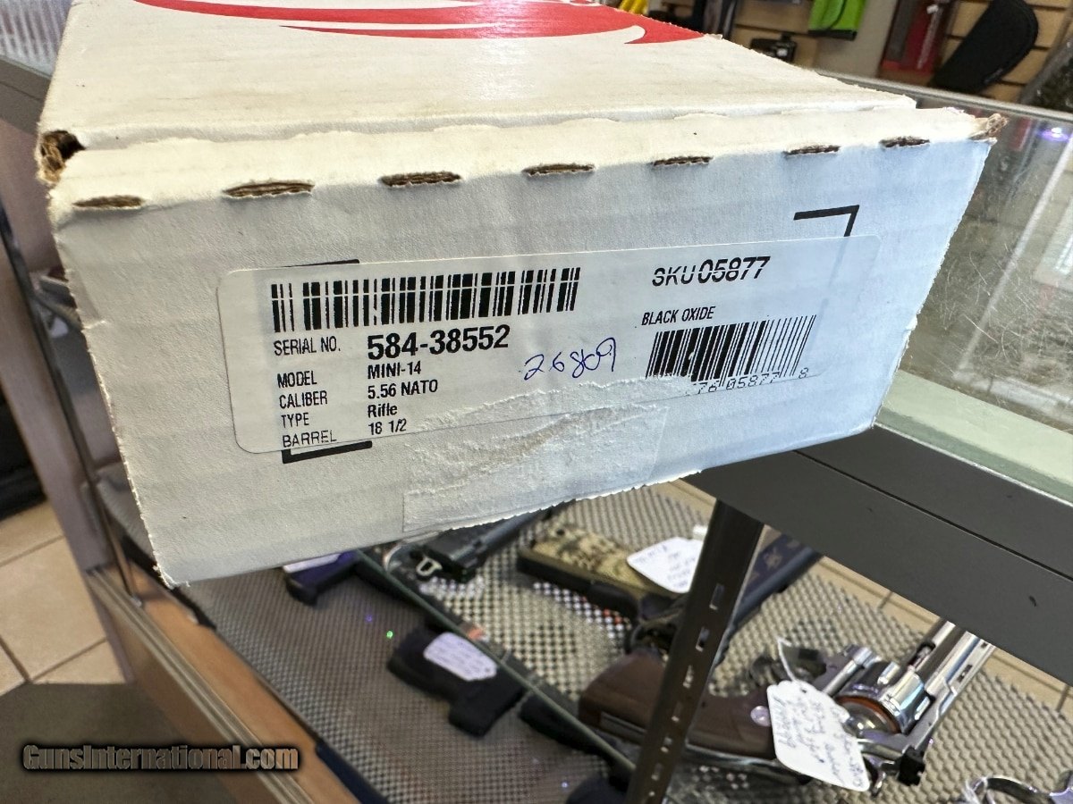 Description: Guns Listing ID: 896903 Ruger 5877 Mini-14 Tactical 5.56x45mm NATO 5+1 18.50\" Barrel, Blued Alloy Steel, Exclusive Hogue Ghillie Green Stock. EXCELLENT CONDITION!! SEE PHOTOS. The Mini-14 Tactical rifle features a simple, rugged, garand-style action with breech bolt locking system, a fixed-piston gas system and self-cleaning moving gas cylinder gives unparalleled reliability under harsh operating conditions. A cold hammer-forged barrel results in ultra-precise rifling that provides exceptional accuracy and longevity. Integral scope mounts, machined directly on the solid steel receiver, provide a stable mounting surface for included scope rings, eliminating a potential source of looseness and inaccuracy in the field. Brand Ruger Category Tactical Rifles Series Tactical Model Mini-14 Caliber 5.56x45mm NATO Stock Finish Group Green Capacity 5+1 Stock Material Fiberglass Action Semi-Auto Hand Right Sights Post Front / Peep Rear Size Full Size Barrel Finish Blued Application Field Description Exclusive Stock Finish Receiver Material Steel Stock Description Hogue Ghillie Green Barrel Length 18.50\" Max Capacity 5 Receiver Finish Blued Stock Finish Ghillie Green SOLD Manufacturer: RUGER Model: MINI 14 RANCH RIFLE Caliber Info: 5.56X45MM NATO Condition: Used - Non-Certified Barrels: 18.5 BARREL Finish: BLUED |