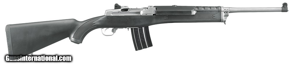 Description: NEW IN STOCK Ruger Mini-14 Ranch Rifle, Semi-Automatic Rifle, 5.56NATO/223Rem, 18.5" Barrel, Matte Stainless Finish, Stainless Steel, Black Synthetic Stock, Adjustable Rear & Blade Front Sight, Includes Picatinny Rail/Scope Rings/2 Mags, 20Rd 05817