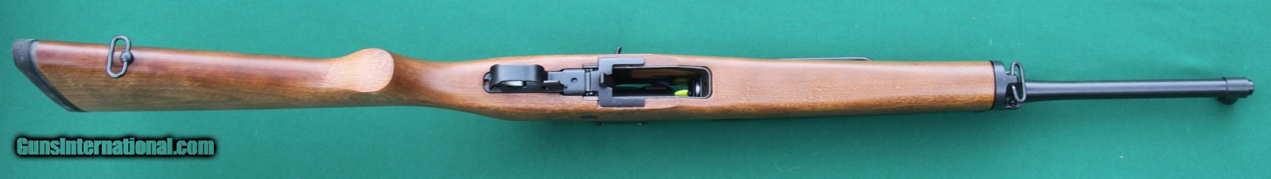 Description: New-in-the-box Ruger Mini-14, Ranch Rifle, semi-automatic, chambered for 5.56 mm / .223 caliber. Specifications: - Hardwood stock/forend - 18½-inch barrel - Blued metal finish - Blued steel receiver - Front sight blade adjustable for windage - Adjustable aperture rear sight - 38-inch overall length - 7 pounds, unloaded, without magazine - M1 Garand-style safety - Black flat metal butt plate Accessories include: - Original box (closing flap is torn) - one 20-round magazine - Owner’s Manual - Cable lock - Scope mounting plate. The photos are high resolution, so zoom to see details. Contact me for additional photos of any area you would like to see or see better. Seller pays shipping and insurance costs. I will accept a personal check, but will hold the gun until it clears. I will also accept USPS money orders which I do not have to hold, as they clear immediately. I will accept other type money orders, but will hold gun until they clear. Note that USPS money orders are limited to $1,000, so two USPS money orders will be required for this purchase. Check or money orders must be made out to Jerry Pownall. The process to purchase this gun is as follows: - Contact me via email so I can make the gun inactive on GunsInternational and send you my mailing address. - Send payment. - Have your federal firearms license (FFL) holder send me a copy of his FFL via email at barboursvillearmsembarqmal. - Once I receive his FFL and cleared payment from you, I will ship the gun to the FFL holder. Per my description, the fastest way to get the gun is to pay with a USPS (U.S. Postal Service) money order, as it is like cash, and I don’t have to wait for it to clear. However, I will accept a personal check or another type money order, but I will hold the gun until it clears my bank. Make your check or money order payable to Jerry Pownall (NOT Barboursville Arms). SOLD |