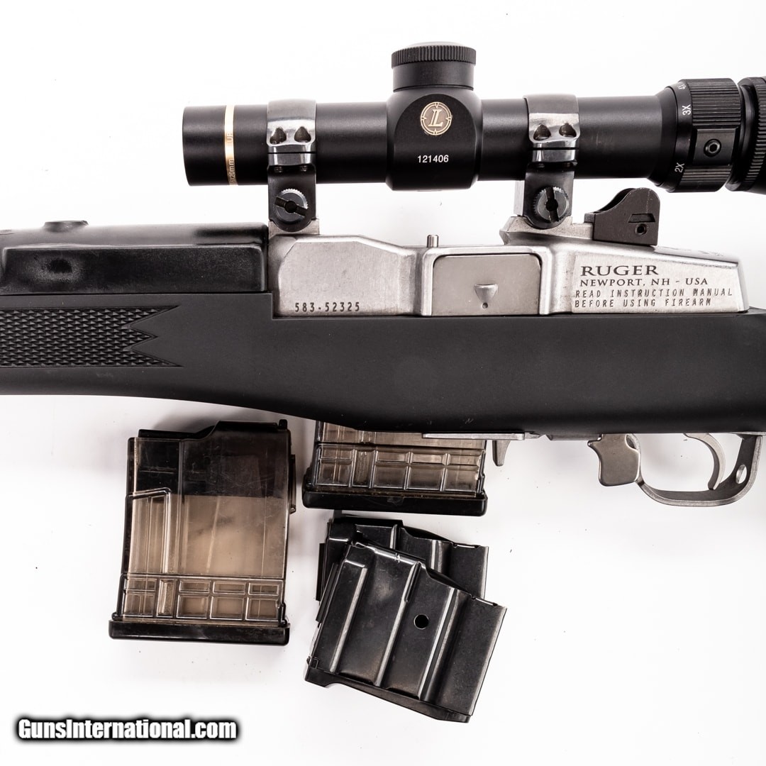 Description: Guns Listing ID: 369805 The Ruger Mini-14 Ranch Rifle is a scaled down semi-automatic variation of the U.S. Military's M14 service rifle originally designed in the 50's. They're well-built and cycle off the legendary Garand-Style action. Whether you're defending your property, hunting, or shooting targets, this is a great general-purpose rifle. All Ruger's are proudly made right here in the U.S.A. with an emphasis on rugged reliability. 2-5 round magazines, 2-10 round magazines, a Leupold 1.5-5X20 scope, and scope covers are included. SOLD Manufacturer: RUGER Model: MINI-14 Caliber Info: 5.56X45MM NATO Condition: Used - Certified Barrels: 18.5 BARREL Finish: STAINLESS |