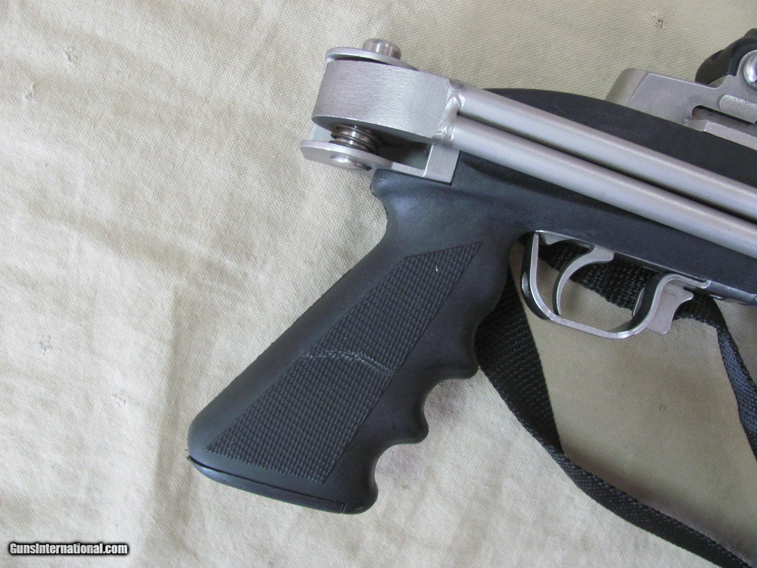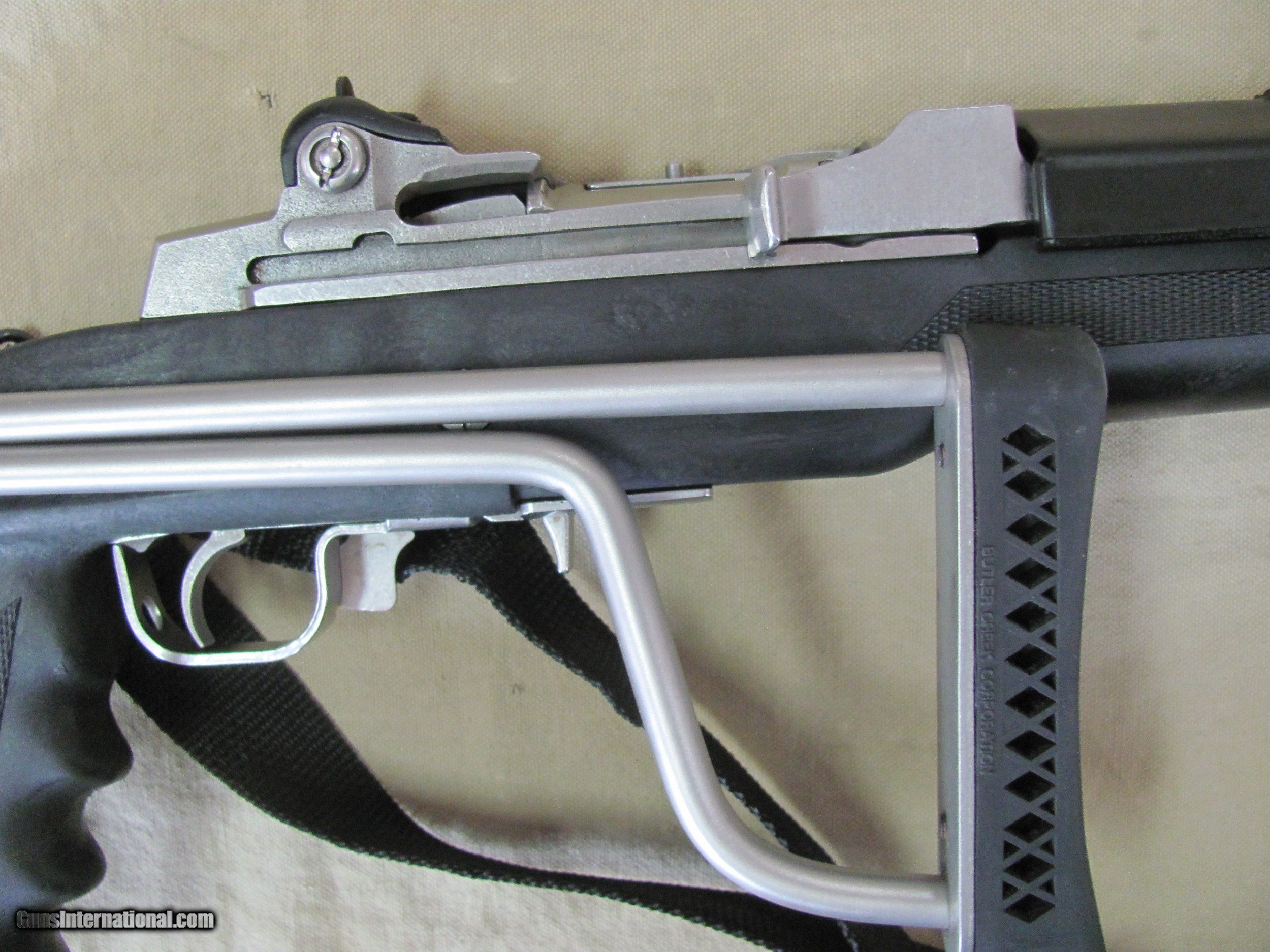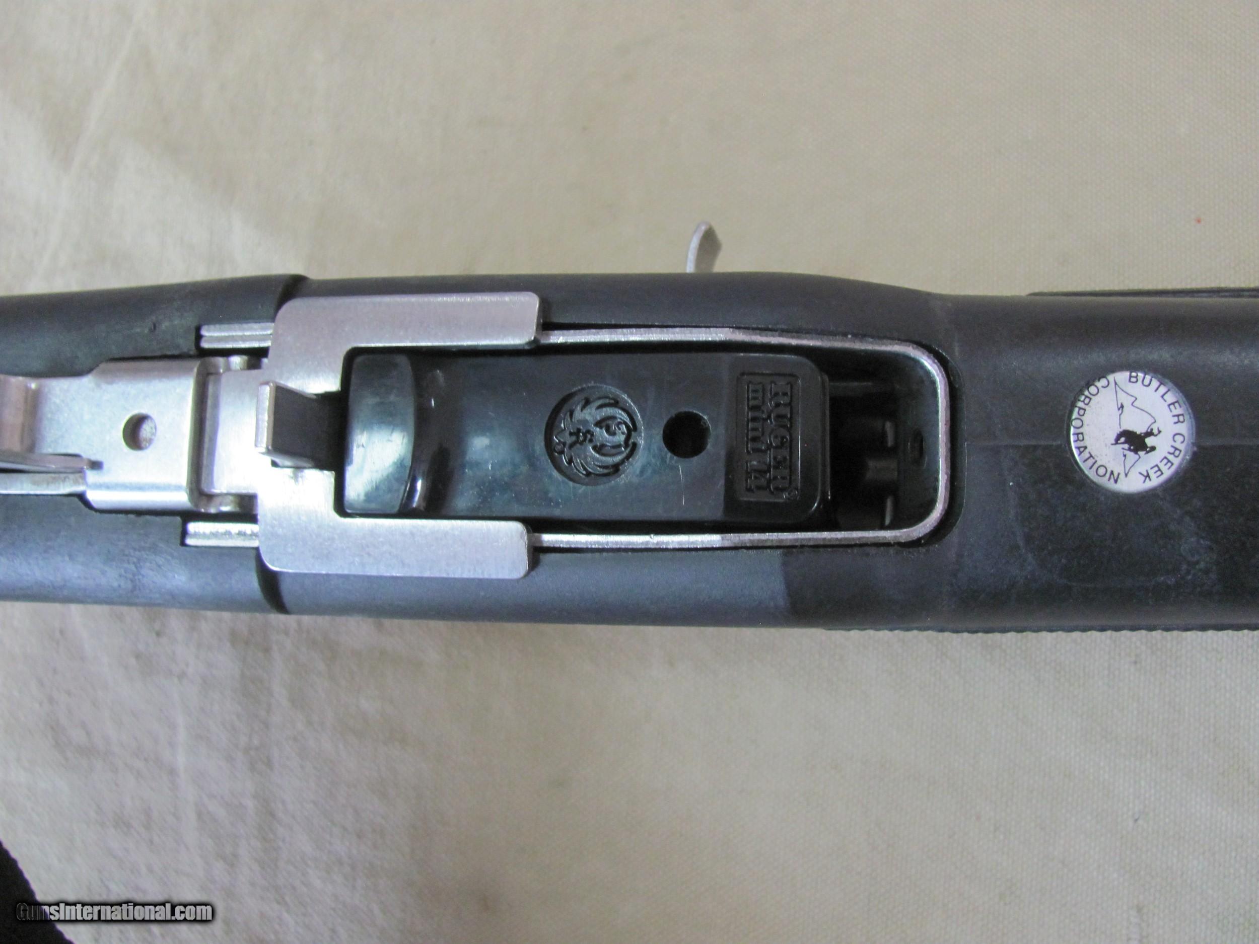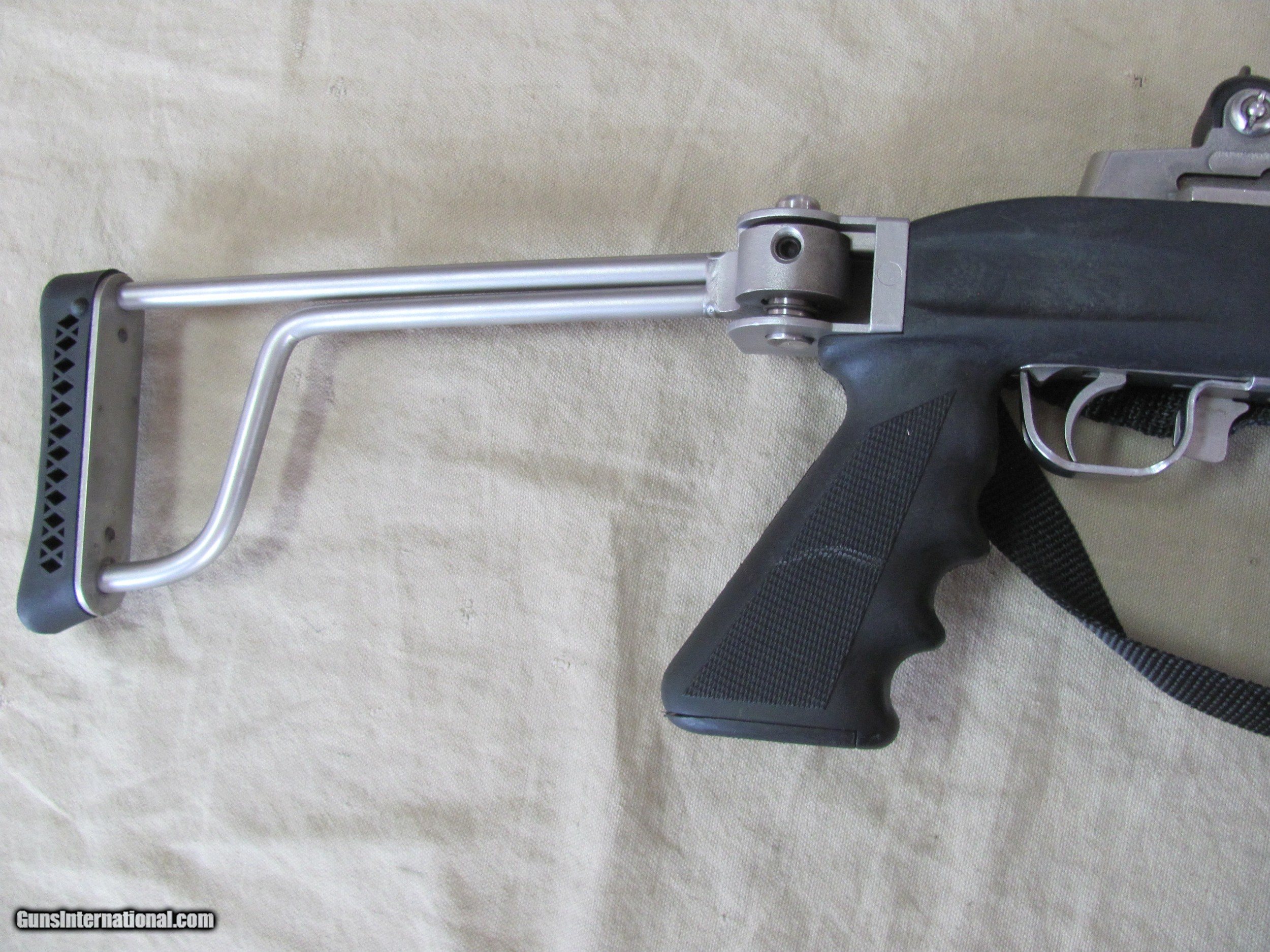 RUGER MINI14 STAINLESS 223 CALIBER SEMI AUTO CARBINE WITH A GOOD STEEL BUTLER CREEK SIDE FOLDING STOCK MANUFACTURED IN 1982