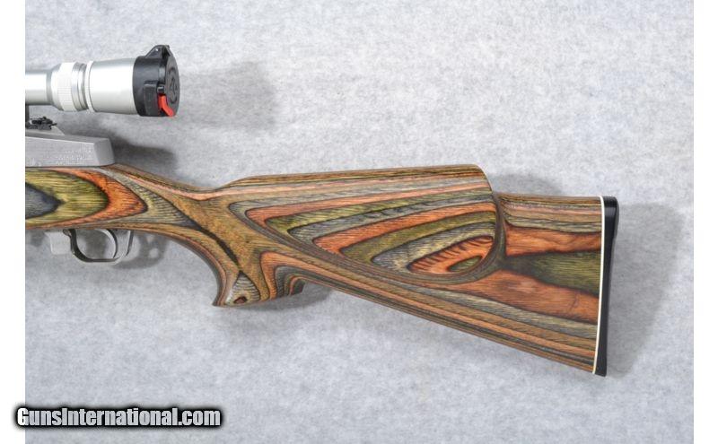 Description: Native American profile stamped on barrel right side. SOLD Caliber Info: .223 Rem. Chambers: Detachable magazine. Metal Condition: Excellent. Wood Condition: Excellent. Bore Condition: Excellent. Barrels: 22 inch stainless steel. Stock: Smooth tri-color laminate pistol grip with a raised cheekpiece. Stock Dimensions: LOP 13 3/4 inches. Fore End: Smooth tri-color laminate. Butt Pad: Horizontal groved black plate. Weight: 9 lbs. 10 oz. with scope mounted. Sights: Leupold Vari-X III 2.5x8 Scope. Folding adjustable rear. No front sight. Item Location: Richfield, WI |