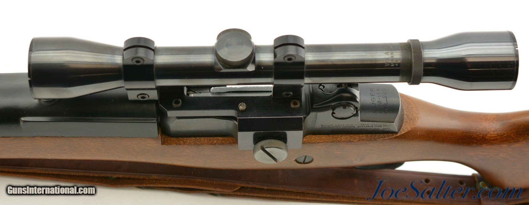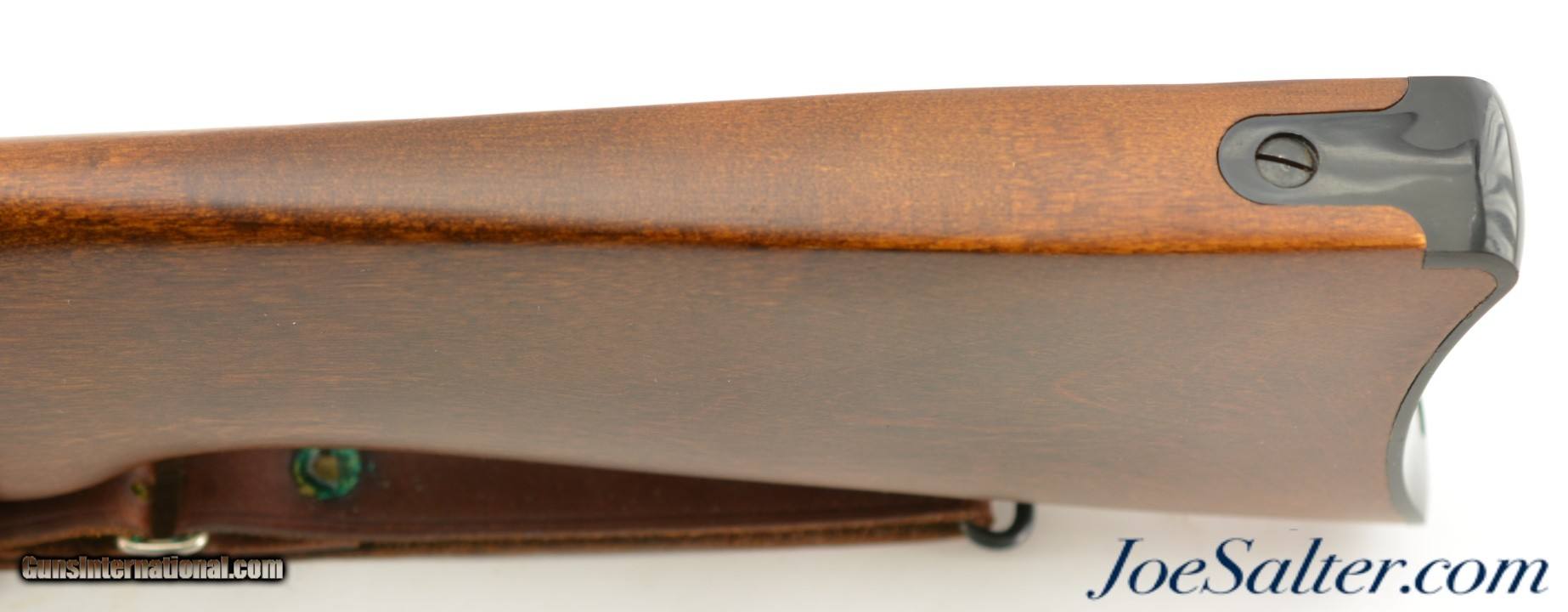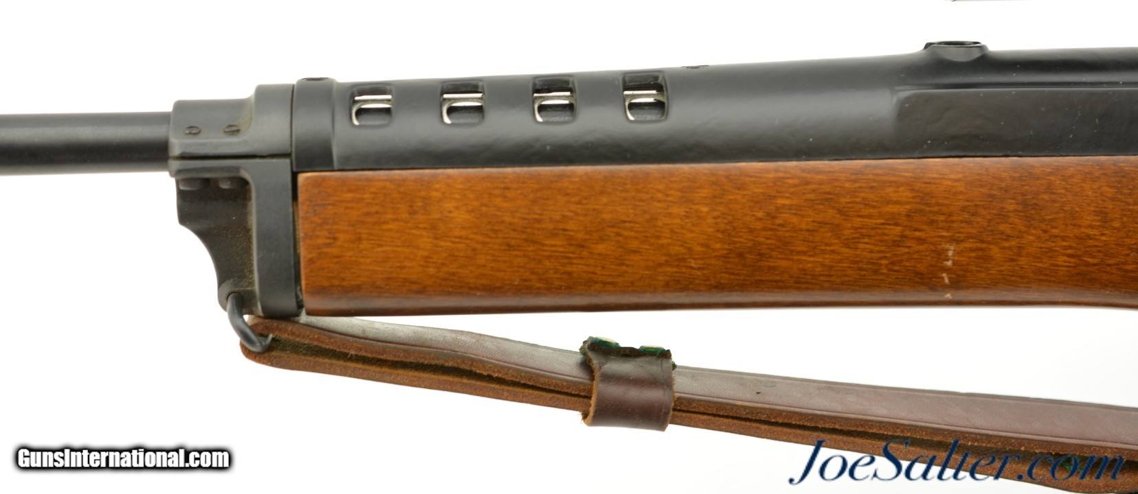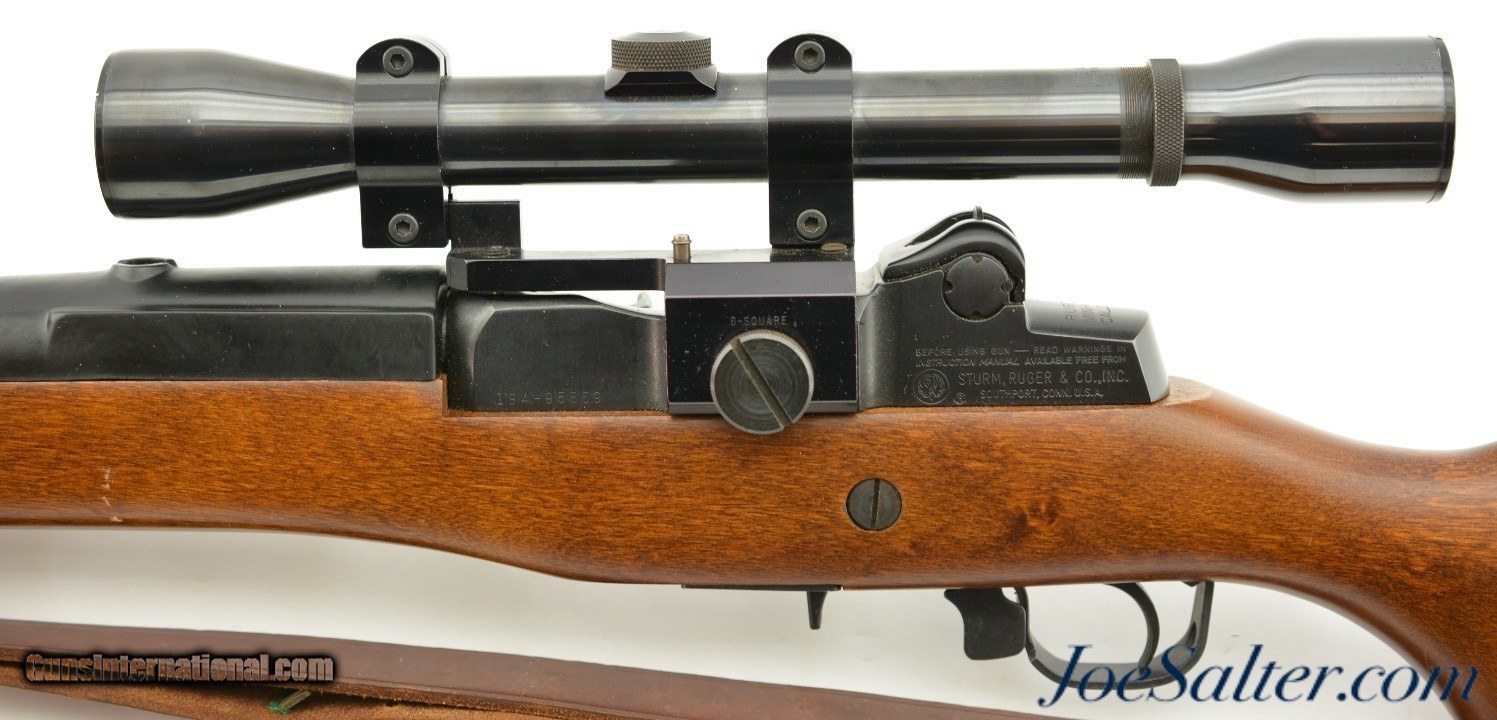 Description: Serial #184-95569, .223 Rem, 18.5 inch barrel with a bright, excellent barrel. This is a 1986 built Ruger Mini-14 featuring a B-Square receiver-mounted scope mount with a Weaver Marksman 4x scope with clear optics. In excellent condition the barrel and receiver retain about 95-87% original finish with the walnut stock also in excellent condition showing several very small contusions. The carbine comes with one original 5 round magazine and a leather military style adjustable sling. An excellent pre-ban 1980's vintage Mini-14. FFL SOLD |