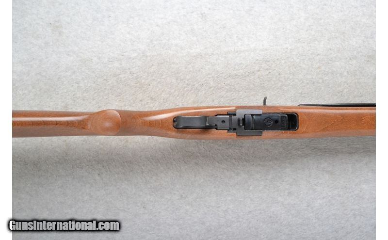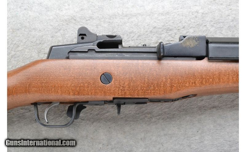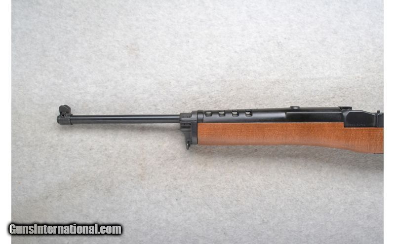 Description: This Ruger Model Ranch rifle is a right hand semi-auto rifle in .223 Rem. Cal. It has an 18.5 inch barrel. A blade front sight with protective sides and an adjustable aperture rear sight. The butt stock is a smooth grip hardwood pistol grip. The forearm lower half is a smooth grip hardwood and the upper half is a vented polymer. .223 Remington SOLD Chambers: 5 round detachable magazine. Metal Condition: Excellent. Wood Condition: excellent. A couple of minor handling marks. Bore Condition: Excellent. Barrels: 18.5 inch barrel. Stock Dimensions: LOP 13 5/8 inches. Fore End: Smooth grip hardwood lower half. Vented polymer upper half. Butt Pad: Ruger black rubber pad. Weight: 7 Lb. 6 Oz. Sights: Blade front with protective sides. Adjustable aperture rear. Integral scope mount base. Item Location: Richfield, WI |