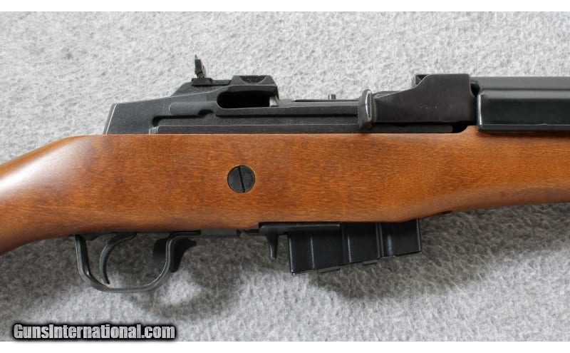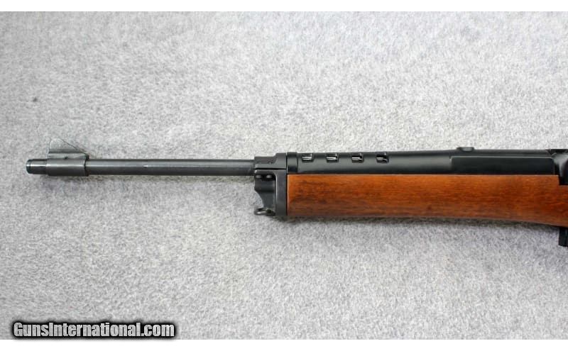Description: The Ruger® Mini-14® Ranch Rifle Semi-Auto Rifle is a scaled down version of the US M-14 with no selective fire switch. The Ruger Mini-14 semi-automatic rifle has a solid reputation for being reliable under all conditions and has been proven in both law enforcement and military use worldwide. The Ranch Rifle operates with a very simple Garand-style design that uses a fixed-piston gas system where gas impinges directly upon the operating rod and a breech bolt locking system. A large extractor and fixed ejector send spent cases flying swiftly to the right of the shooter. The Ranch Rifle ejector is set to eject cases low to avoid hitting a mounted scope. No tools are required to quickly fieldstrip the rifle down to a few large parts that are not easily misplaced, and it reassembles just as quickly. A ghost ring, adjustable rear aperture sight and blade front sight provide for rapid target acquisition and hold up to rugged use. Integral scope mounts are machined into the receiver for mounting an optical sight. The Ruger Mini-14 Ranch Rifle is a fast-handling Semi-Auto Rifle that's great for hunting, pest control, home-defense, and emergency preparation. Made in USA 1986. Call Cabela's Lehi, Utah gun Library direct (801)766-2521 .223 Remington SOLD Metal Condition: Very good with some scratches and wear on the sharp edges Wood Condition: Very good scratches and dents Bore Condition: Very good with signs of use Barrels: 18 inch barrel Weight: 7 lbs. Sights: "Aperture rear sight with blade front, receiver dovetailed for scope mounting Item Location: Lehi, UT |