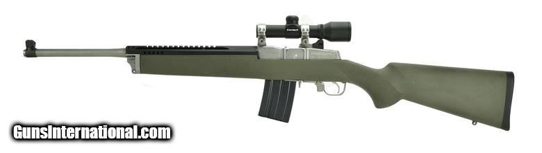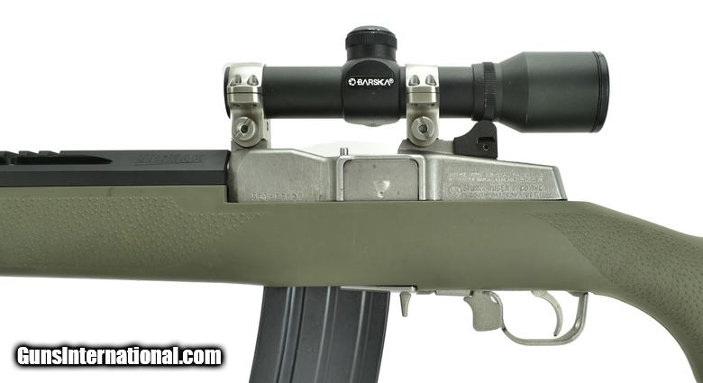 Description: Ruger Ranch Rifle 6.8 Special caliber carbine. Stainless carbine with green synthetic stock. Has a Barska scope. Excellent condition.