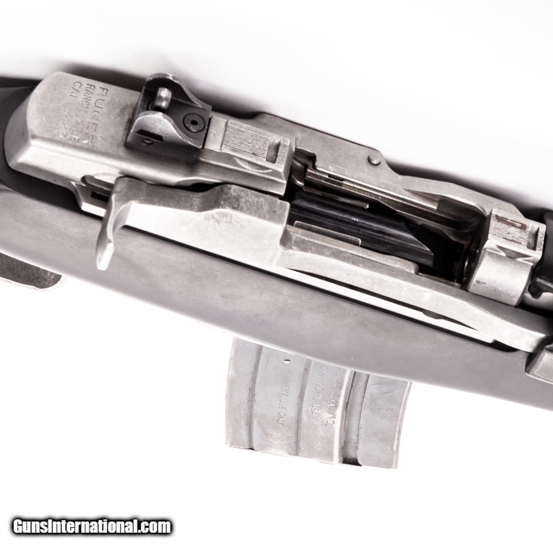 Description: Guns Listing ID: 399322 The Ruger Mini-14 "Ranch Rifle" is a scaled down semi-automatic variation of the U.S. Military's M14 service rifle originally designed in the 50's. It cycles off a Garand style action, which is not only a neat throwback to one of the most iconic rifles in U.S. history, but it offers smooth and consistent performance as well. Mini-14's are regarded as excellent general-purpose rifles that fill a similar role to an AR-15, but with a more classic look. This specific rifle for sale is part of a prison guard bulk buy that Guns procured. The features of this model include a black synthetic stock, a stainless 18-inch barrel, scope mount rails, a winged front sight, an attached rear sight block, and one 20-round magazine. There is an inventory sticker from the corrections facility. SOLD Manufacturer: RUGER Model: RANCH RIFLE Caliber Info: .223 REM Condition: Used - Certified Barrels: 18 BARREL Finish: STAINLESS |