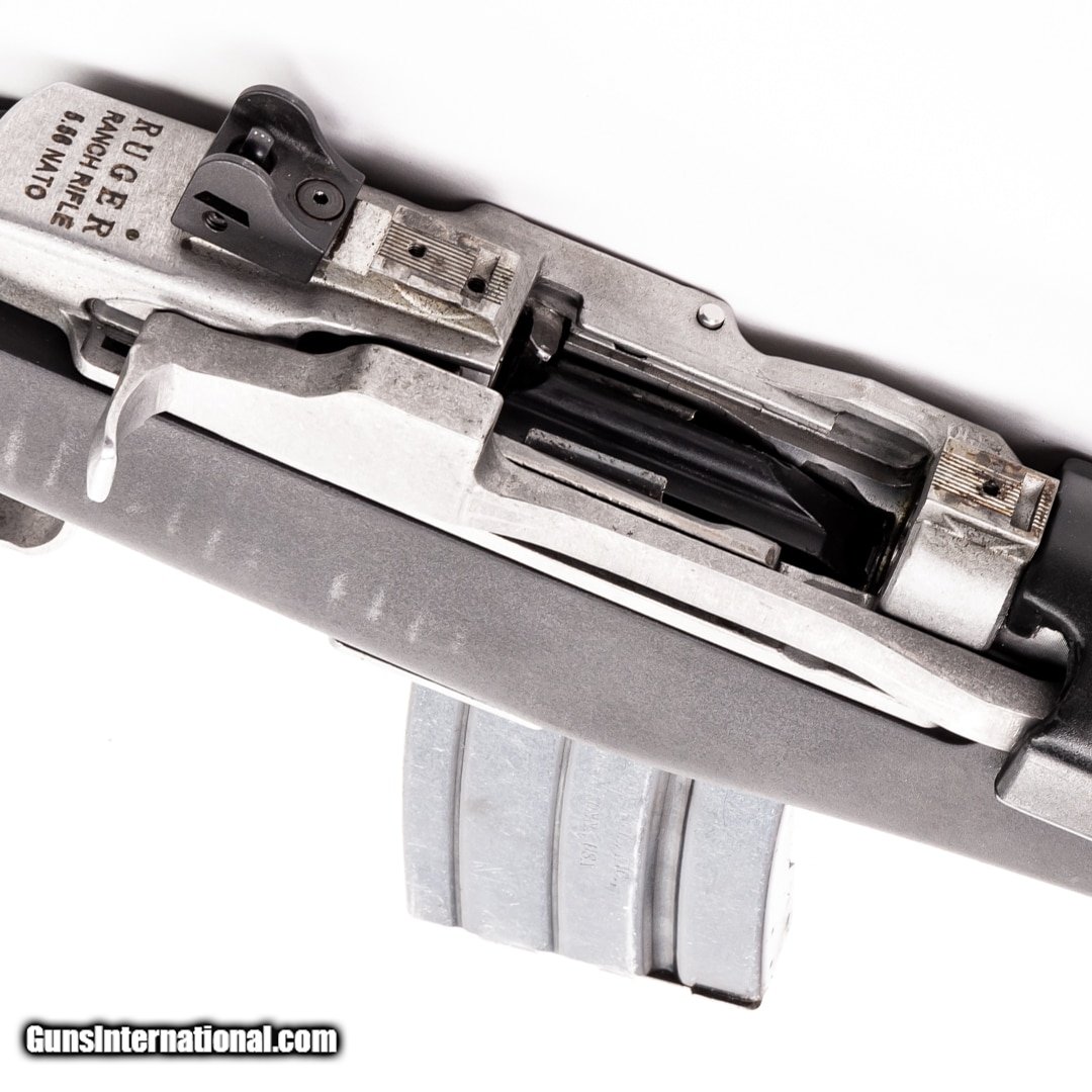 Description: Guns Listing ID: 399365 The Ruger Mini-14 "Ranch Rifle" is a scaled down semi-automatic variation of the U.S. Military's M14 service rifle originally designed in the 50's. It cycles off a Garand style action, which is not only a neat throwback to one of the most iconic rifles in U.S. history, but it offers smooth and consistent performance as well. Mini-14's are regarded as excellent general-purpose rifles that fill a similar role to an AR-15, but with a more classic look. This specific rifle for sale is part of a prison guard bulk buy that Guns procured. The features of this model include a black synthetic stock, a stainless 18-inch barrel, scope mounts that have been tapped, a flash hider, a winged front sight, an attached rear sight block, and one 20-round magazine. SOLD Manufacturer: RUGER Model: RANCH RIFLE Caliber Info: 5.56X45MM NATO Condition: Used - Certified Barrels: 18 BARREL Finish: STAINLESS |