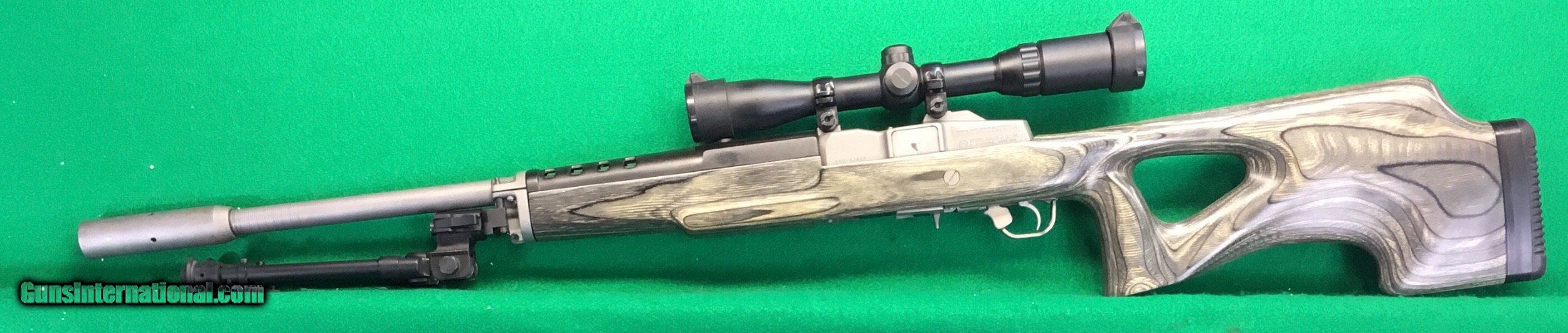 Description: Sold and on hold, no longer available // A lot of work went into this custom Stainless steel Ruger mini-14, 223/5.56 caliber. Custom stock and barrel with flash hider. bi-pod attached. 3-9X Simmons scope. $1298 includes insured shipping. Layaway available. No credit cards and no trades. more info on request. SOLD |