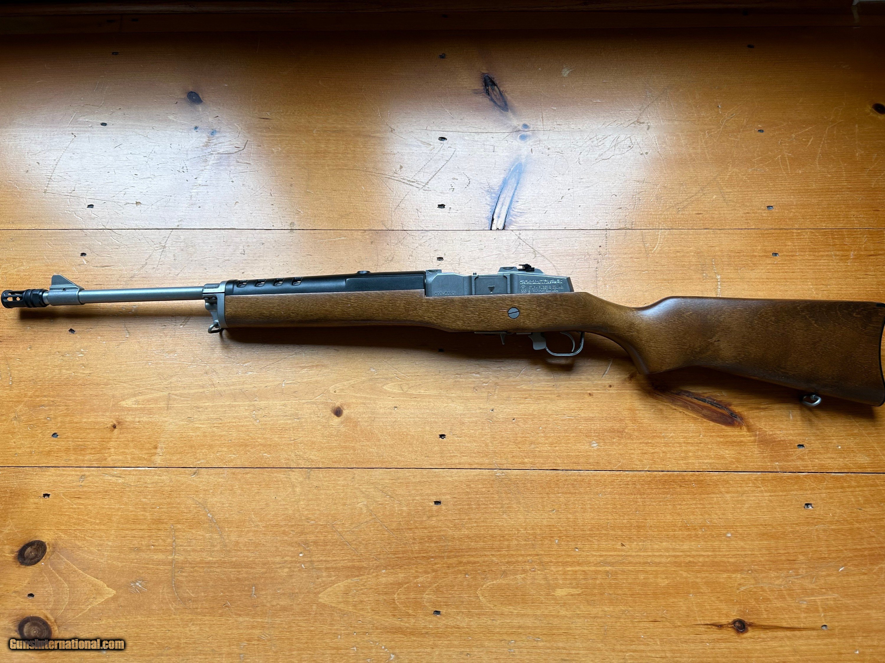 Description: RUGER MINI-30 7.62 X 39 USED WITH MUZZLE THREADED & AR STYLE FLASH SUPPRESSOR ATTACHED, ORIGINAL FACTORY SIGHTS FRONT BLADE & REAR FLIP-UP PEEP, 1 EA FACTORY 5-ROUND MAG. GREAT CONDITION, BRIGHT BORE WITH CRISP RIFLING, VERY SLIGHT USE MARKS ON WOODEN STOCK / NO CHIPS OR GOUGES. PRIVATE SALE. WILL SHIP TO FFL HOLDER OR MEET LOCAL WITH DRIVERS LICENSE & CCW. $50 SHIPPING TO LOWER 48 ONLY WHERE LEGALLY PERMITTED. SOLD Rifle Caliber: 7.62x39mm Manufacturer: RUGER Model: MINI-30 Serial Number: 189-84593 Barrel Length: 18.5 Condition: EXCELLENT Metal Condition: EXCELLENT Wood Condition: VERY GOOD Bore Condition: EXCELLENT |