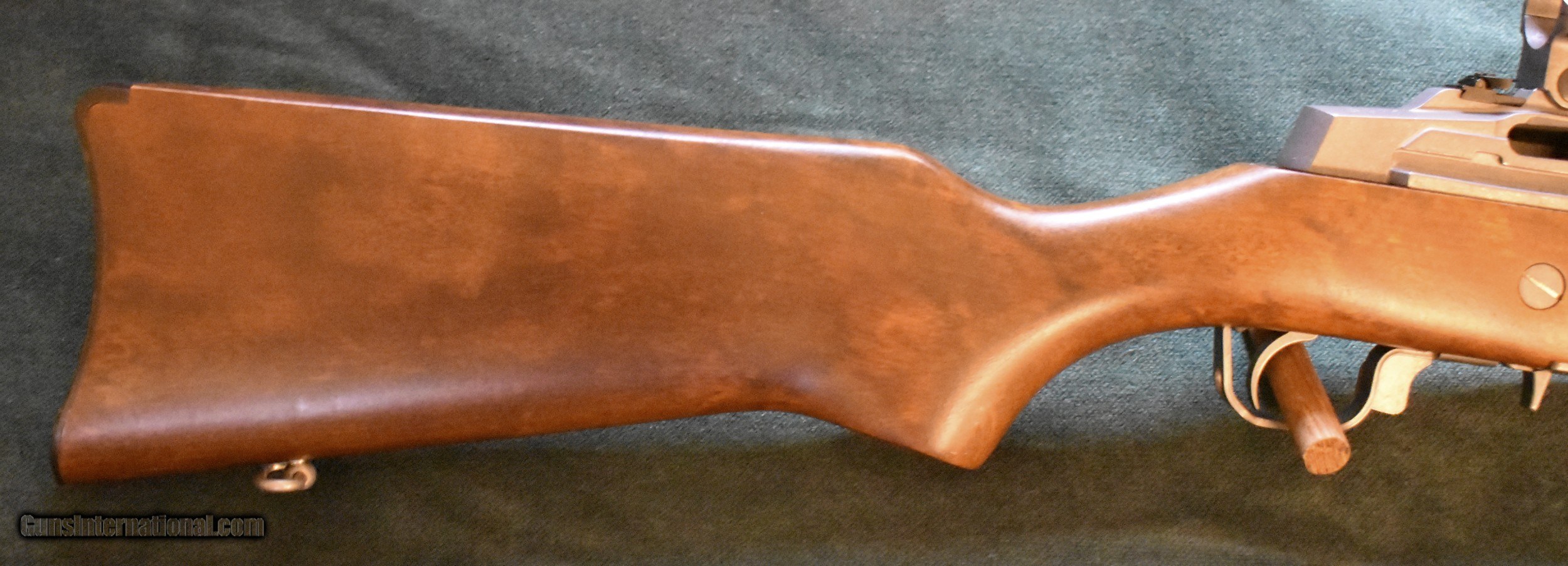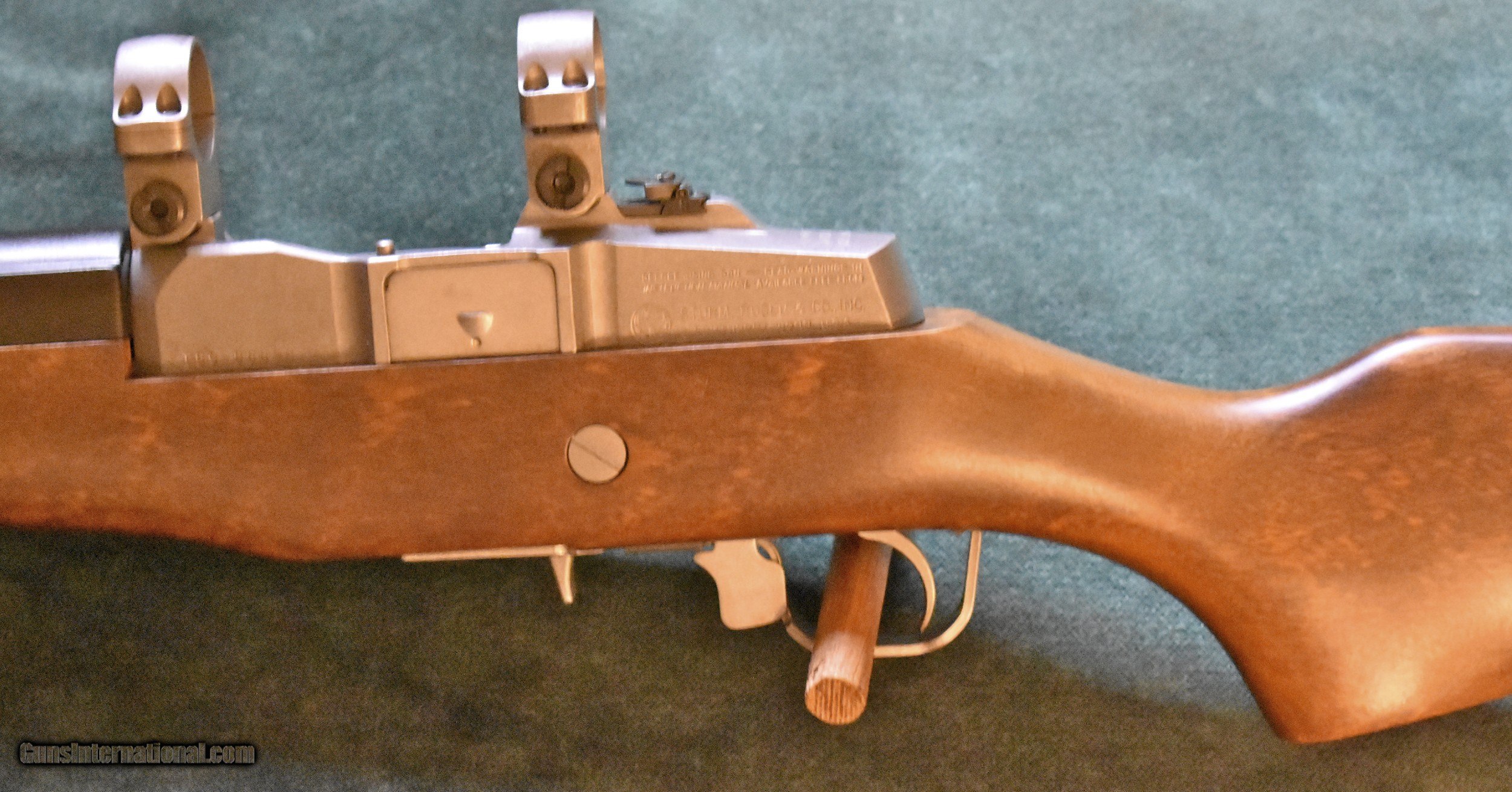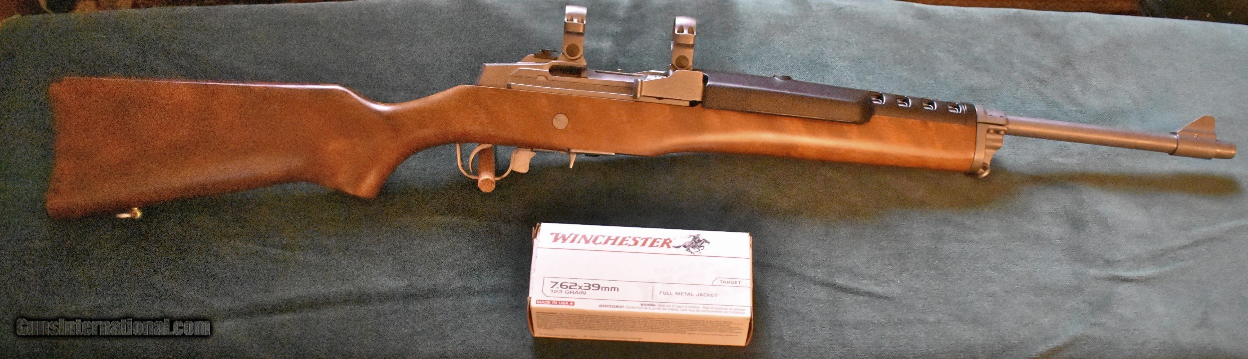 Description: Ruger mini thirty 7.62x39 semi auto rifle. Built in 1998,this rifle is in mint like new condiiton. It retains 100% of the original metal and wood finish. The stainless barrel has a mint bore. The rifle retains the original open sights and comes with Ruger 1" stainless rings,one 5 round magazine, and one box of Winchester 123 grain FMJ ammo. A great ranch rifle or varmint rifle. Sorry,no box. SOLD Rifle Caliber: 7.62x39mm Manufacturer: Ruger Model: Mini 30 Serial Number: 189-88898 Barrel Length: 181/2 Condition: mint Metal Condition: mint Wood Condition: mint Bore Condition: mint Action: semi auto Extras: Ruger 1" rings |
