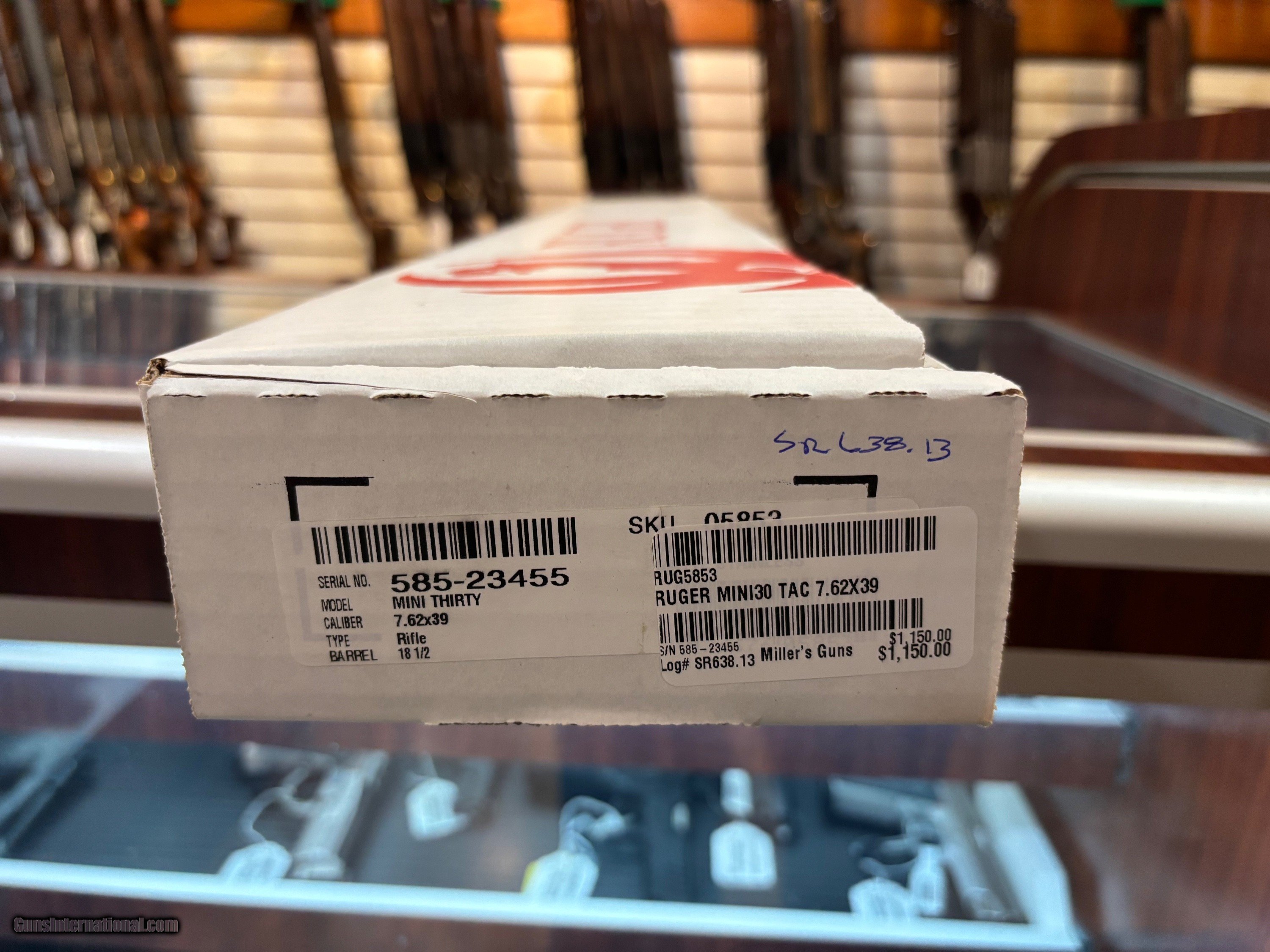 Description: Ruger Mini 30 7.62x39 (1)10 and (1) 20 round magazine included Scope rings included Black synthetic stock Stainless barrel/receiver SOLD Rifle Caliber: 7.62x39mm Manufacturer: Ruger Model: Mini 30 Serial Number: 585-23455 Barrel Length: 18.5 Condition: NEW |