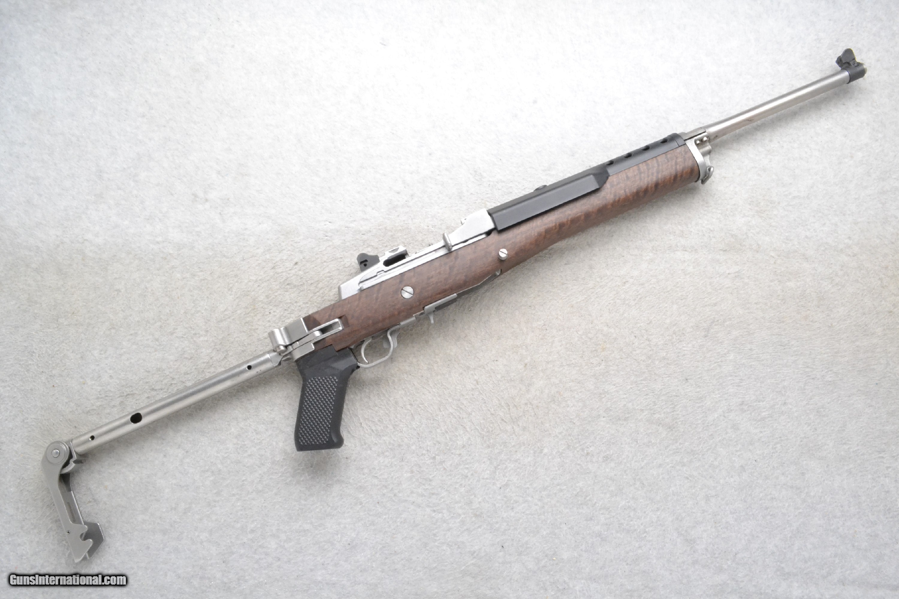 Description: This Ruger Mini Thirty is a right-hand semi-auto rifle in 7.62x39MM Cal. It has an 18-inch stainless steel barrel with an elevated, blade front sight with side protectors, and an elevated peep rear sight with side protectors. Drilled and tapped for optics. The forearm is smooth hardwood and the stock is folding stainless steel with a checkered polymer pistol grip. 7.62X39mm SOLD Chambers: 20 round detachable magazine Metal Condition: Very good Wood Condition: Very good Bore Condition: Excellent Barrels: "18"", stainless steel Stock Dimensions: LOP 13.5 Fore End: Smooth hardwood Butt Pad: "Folding, stainless steel Weight: 7 lbs Sights: "Elevated, blade front sight with side protectors, elevated peep rear sight with protectors, drilled and tapped for optics Item Location: Richfield, WI |