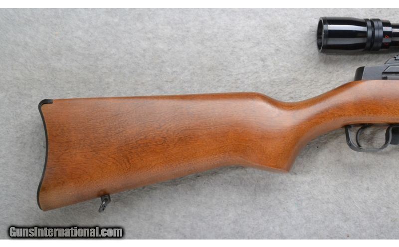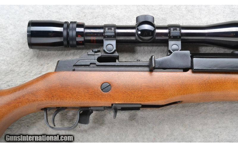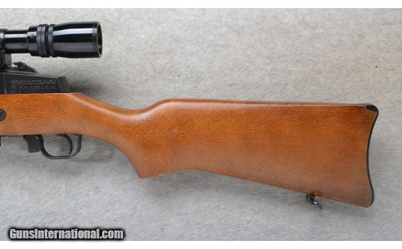 Description: This Ruger Model Mini Thirty is a right hand semi-auto carbine rifle in 7.62x39mm Cal. It has an 18.5 inch barrel. A blade front sight and a folding adjustable notch rear sight. It is outfitted with a Simmons 3-9x32 Scope. The butt stock is a smooth grip hardwood pistol grip. The forearm is a smooth grip hardwood. 7.62x39mm SOLD Chambers: 20 round magazine. Metal Condition: Excellent. Wood Condition: Excellent. Bore Condition: Excellent. Barrels: 18.5 inch barrel. Stock Dimensions: LOP 12 1/2 inches. Fore End: Smooth grip hardwood with a steel tip. Butt Pad: Curved hard black plastic. Weight: 7 lb. 12 oz. Sights: Blade front. Folding adjustable notch rear. Simmons Deerfield 3-9x32 W.V. Scope. Item Location: Richfield, WI |
