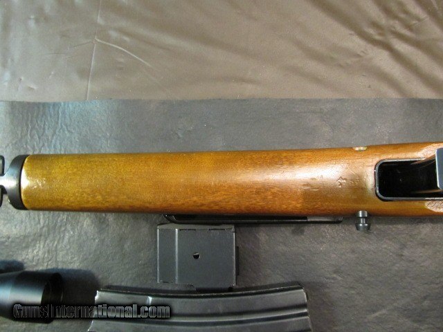 Description: Up for sale is a really cool and super clean RUGER MINI THIRTY CHAMBERED IN 7.62X39. This Late 80'S Rifle is in excellent condition with very minor handling wear. The 18.5 inch barrel is like new with excellent rifling and factory flip up rear and blade front sights. Bluing is near mint with no loss to finish. Comes with the attached FACTORY folding stock in very good condition with some slight handling wear and dents but no cracks and very tight and i am thinking its from a prison or other law enforcement agency as its marked EL27. Also comes with the original wood stock in excellent condition with barely any handling wear like new. Also comes with 1 FACTORY 5 RD MAG, FACTORY 20 MAG AND NON FACTORY 30 RD MAG. Also attached is a scope rail to attach your favorite optics. Comes with a ULTRALUX 4x25 scope with perfect optics and functions perfectly. Extreamly nice set up ready to rock. Cycles and functions PERFECTLY!! Thanks for looking and any questions just ask. NO SALES TO CALIFORNIA,HAWAII OR ANY OTHER STATE THAT RESTRICTS THIS RIFLE AND MAGS FOR ANY REASON. $40.00 SHIPPING. SOLD. SOLD Rifle Caliber: 7.62x39mm Manufacturer: RUGER Model: MINI THIRTY Serial Number: 189-26282 Condition: EXCELLENT Metal Condition: LIKE NEW Wood Condition: EXCELLENT Bore Condition: EXCELLENT Manufacture Date: 1989 |